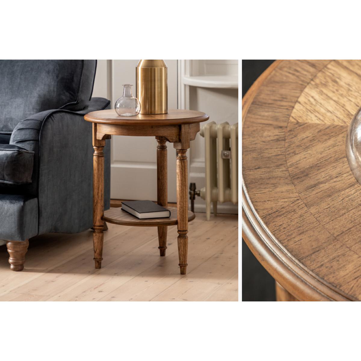 Transform your room into an elegant and stylish living space with the Chateau Side table. With exquisite rich brown Mindy wood, the Chateau tables turned spindle legs and small shelf is a must have for any room, the perfect compliment to a fresh bouquet or artistic sculpture.