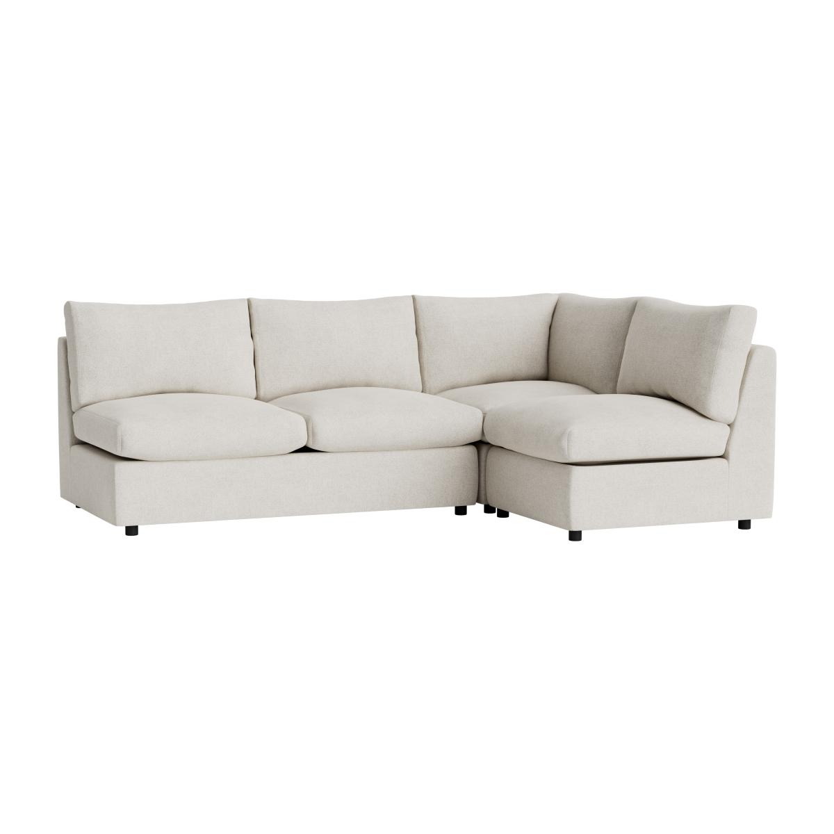 I love this modular corner sofa for its versatility and contemporary appeal, making it a practical choice for both open-plan living spaces and more compact interiors. Its neutral hue ensures it fits effortlessly with a range of colour schemes, while the modular design allows for easy reconfiguration to suit any room layout or lifestyle needs. Styling tips include pairing it with textured throws and cushions in layered neutral tones or subtle colours for a relaxed, inviting feel. Its clean lines and simple silhouette make it adaptable for both minimalist schemes and cosier, layered interiors. For smaller spaces, keep surrounding decor minimal to let the sofa be the focal point, while in larger rooms, it can anchor the seating area, complemented by a statement rug or artwork to add personality.