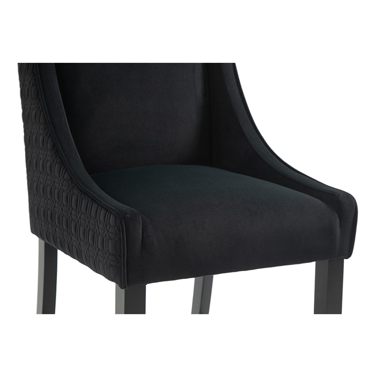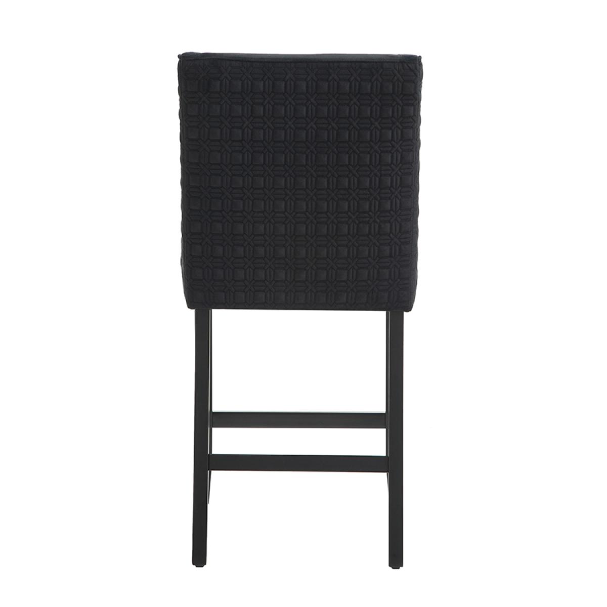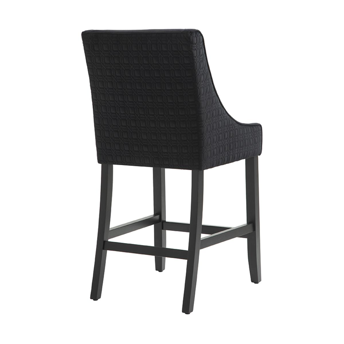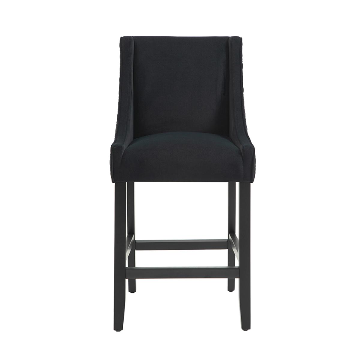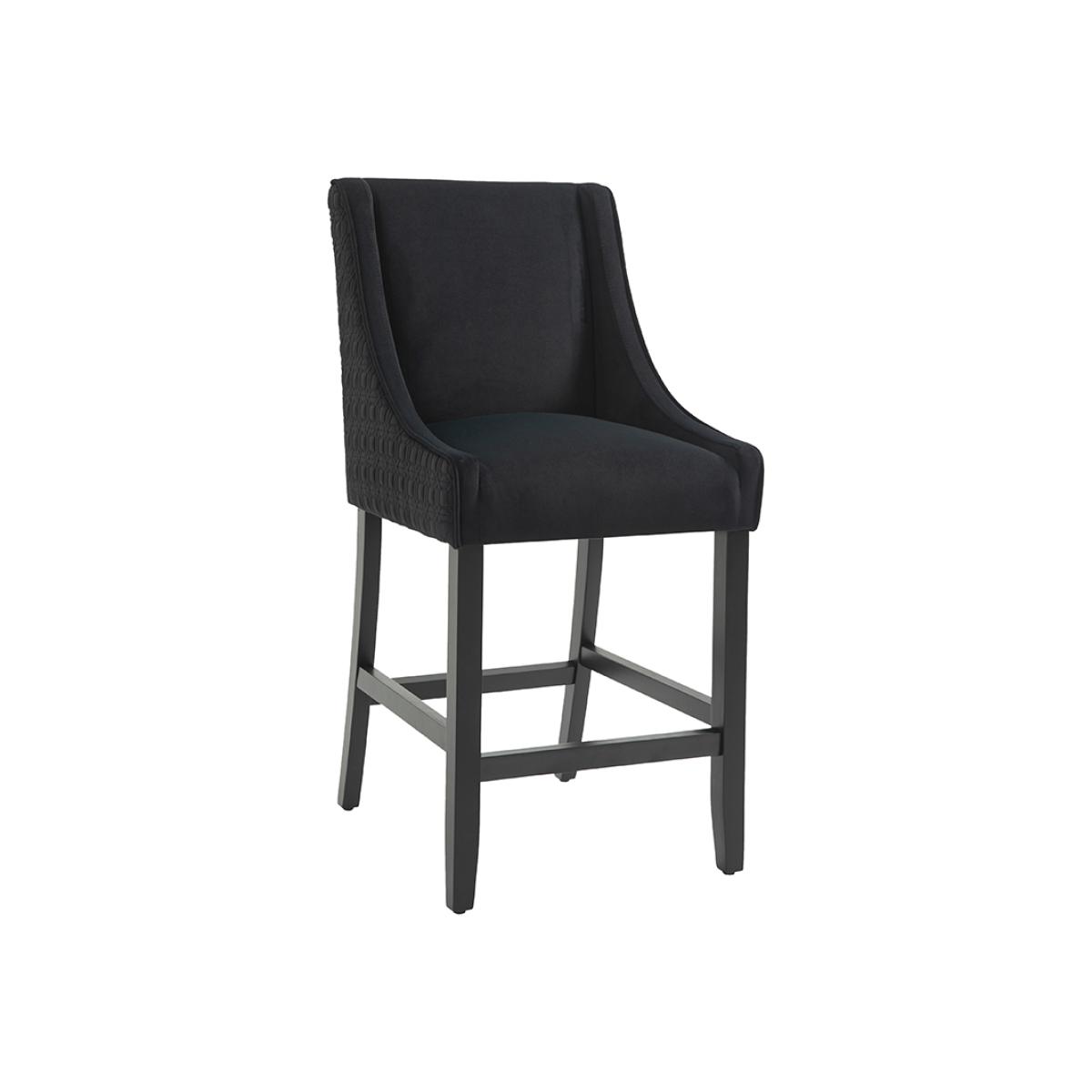 A timeless elegant counter stool. Ideal in height for use at standard breakfast bars. Sprung base with comfortable deep foam and fibre filling. Quilted patterned fabric to the back and sides. Velvet upholstery fabric to the seat and backrest. Stained solid ash legs. Simple assembly required, approximately 10 minutes.
