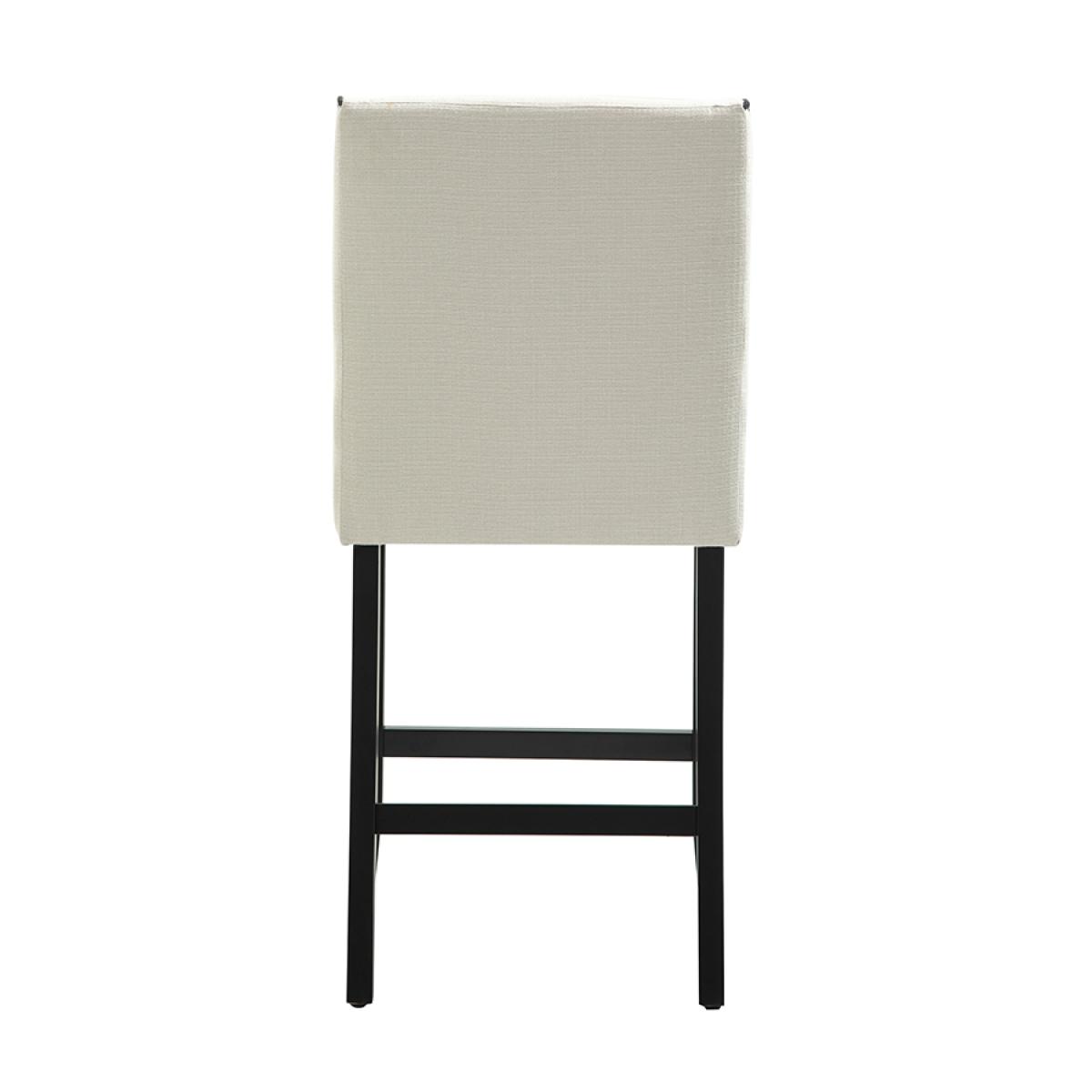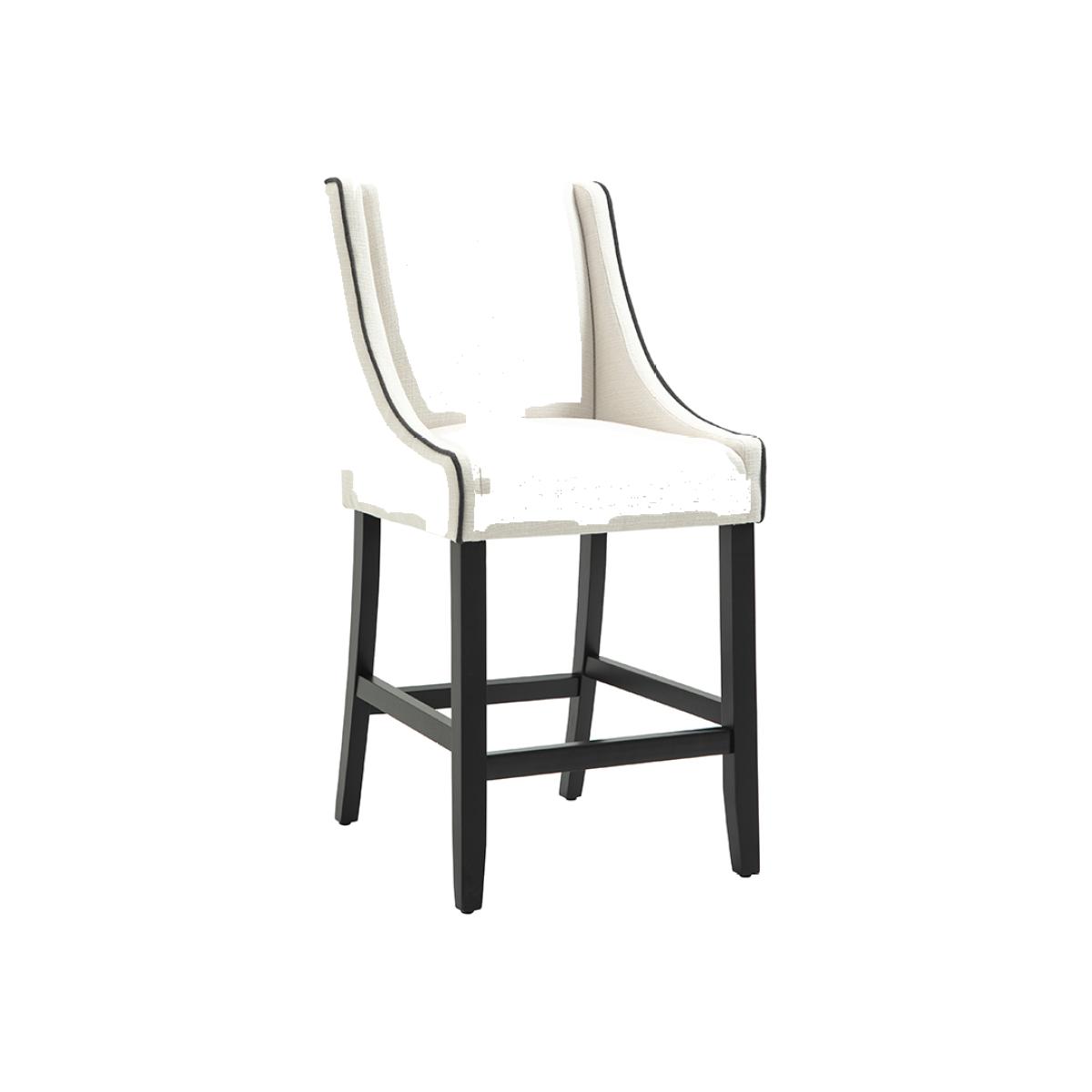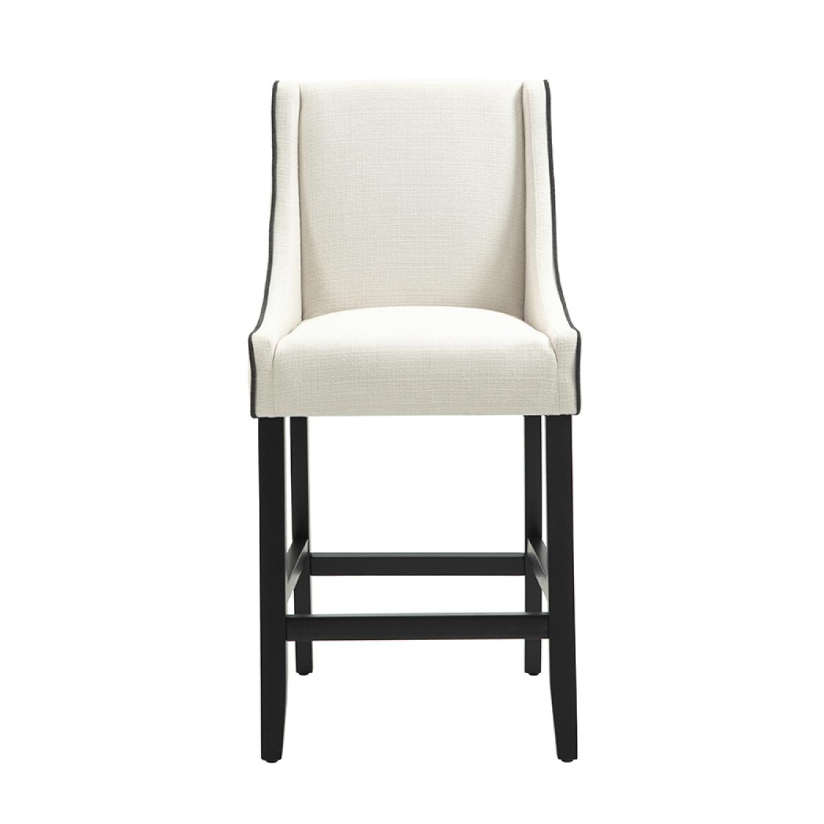 A timeless elegant counter stool. Ideal in height for use at standard breakfast bars. Sprung base with comfortable deep foam and fibre filling. Practical and durable linen effect fabric with a soft, tactile feel. Contrast piping. Stained solid ash legs. Simple assembly required, approximately 10 minutes.