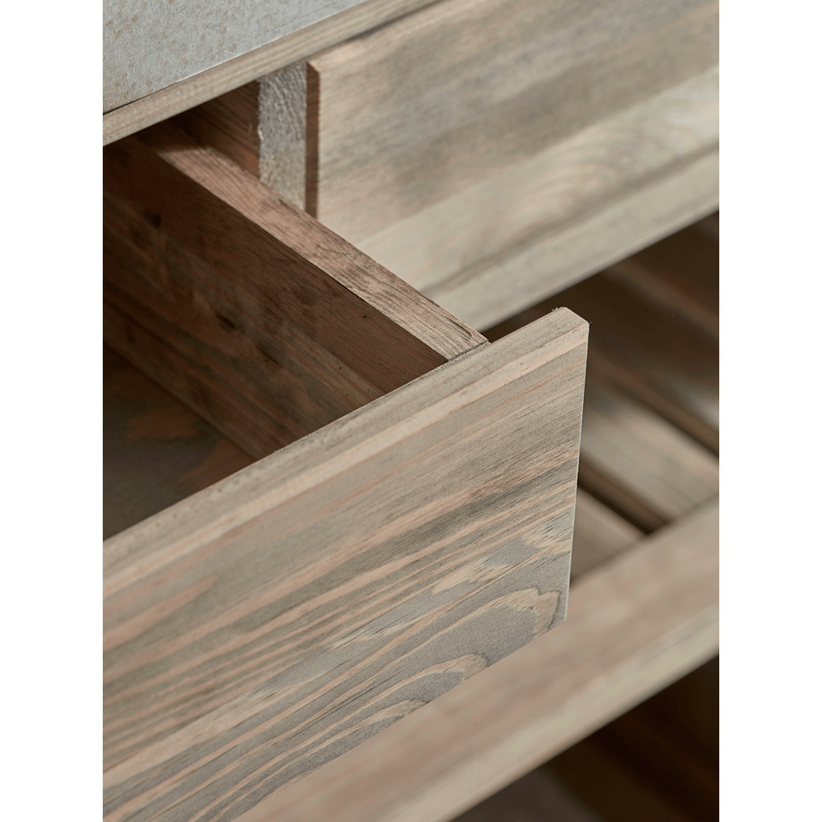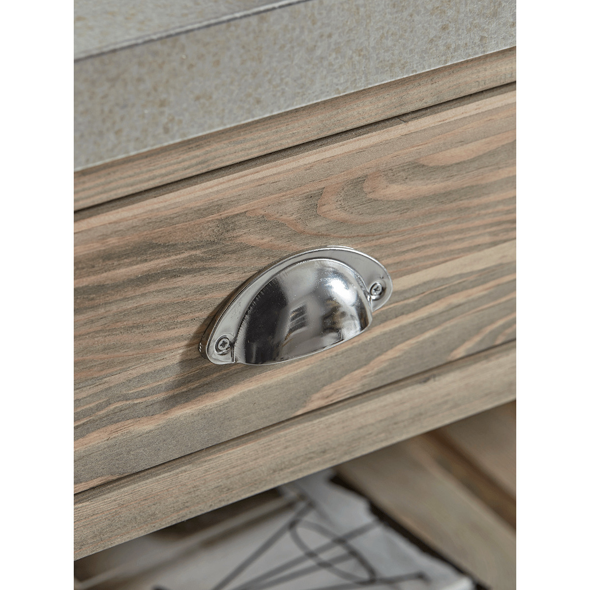 Inspired by our bestselling Chastworth Chest, our statement storage console is designed for large spaces. Each table features shelf detailing, two handy drawers with vintage style handles and a distressed galvanised metal top with a fabulous worn vintage feel. Discover more styles in our Chatsworth Furniture Collection. Recreate the look with our Industrial Curved Top Window Mirror.