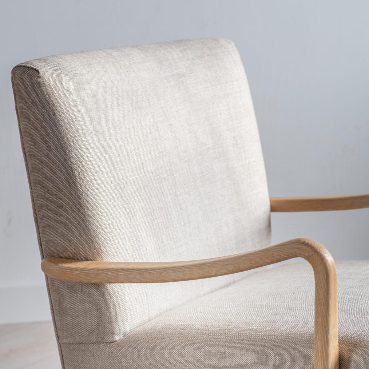 I love this armchair because of its clean, understated design and neutral linen fabric, making it an easily versatile piece. It works particularly well in Scandi, Mid-century Modern, or minimalist interiors where its simple silhouette can stand out without overpowering the space. Practical styling tips include pairing it with textured cushions or a cozy throw to add warmth, and placing it near natural light or alongside other wooden furniture to enhance its natural, earthy feel. It’s a great choice for creating a cosy reading nook or accent spot in a living room or bedroom, offering comfort with a timeless aesthetic.