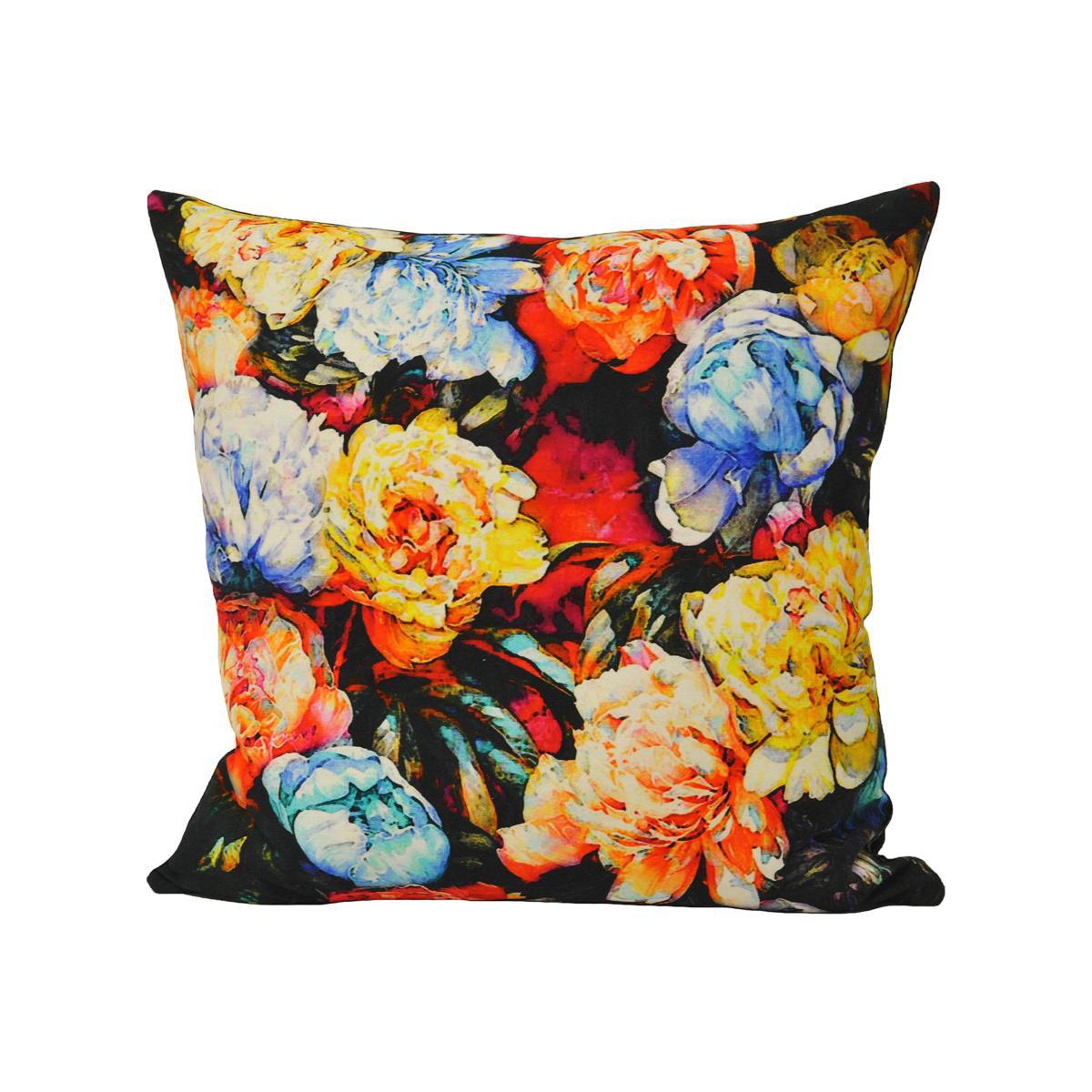 I love this cushion for its striking floral design contrasted with the sleek black background, making it a versatile statement piece. It works particularly well in contemporary and eclectic interiors, adding colour and personality to neutral sofas or beds. For styling tips, mix it with understated cushions to emphasise its boldness, or pair it with other floral or textured fabrics for a layered look. Its size makes it ideal for accenting armchairs, sofas, or beds, and the dark colour helps conceal minor stains, making it practical for everyday use in lively households.