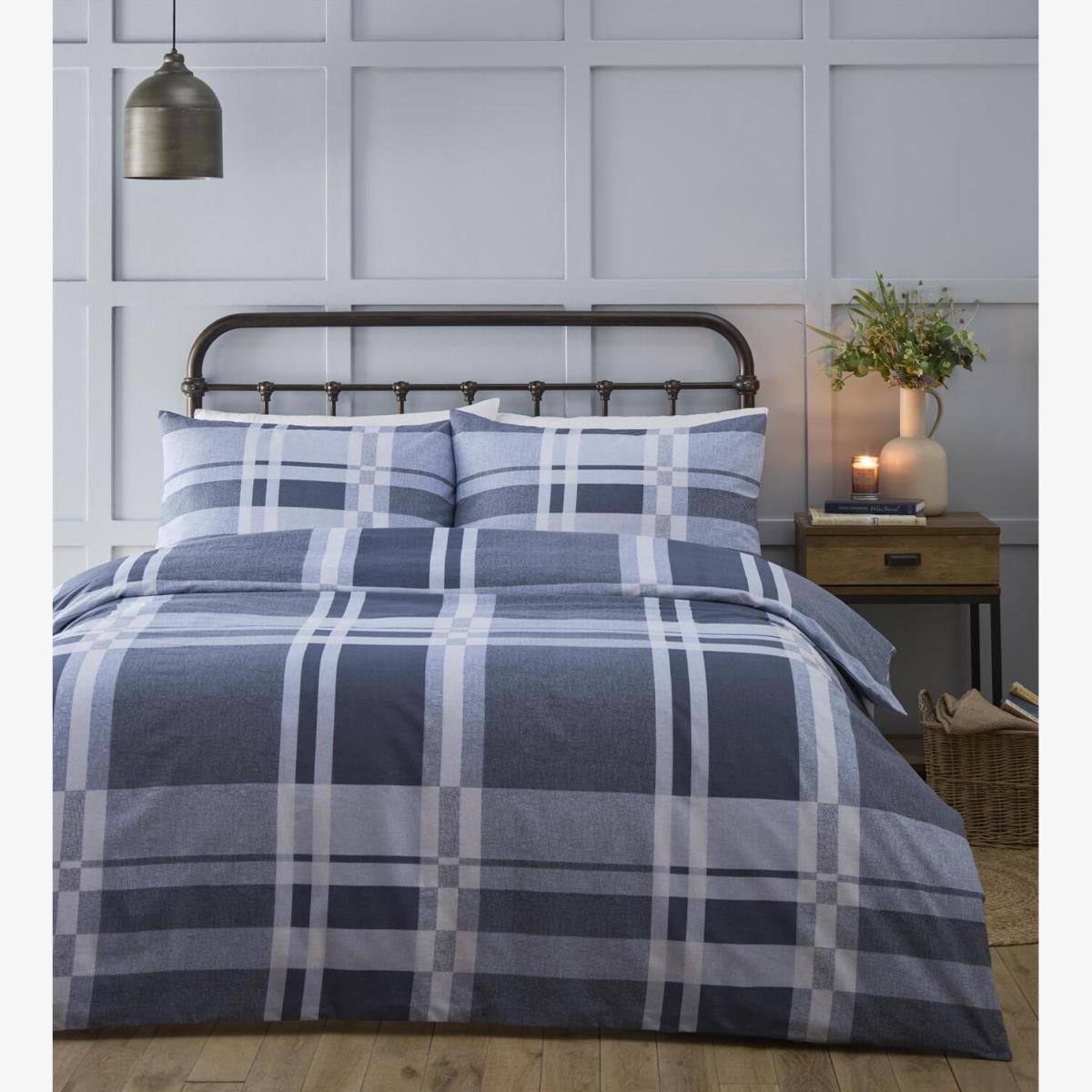 Bring a classic touch to your bedroom with the Carson plaid duvet cover set. Featuring a timeless blue and white plaid design, this set blends rustic charm with a modern twist. The bold plaid pattern provides a fresh and clean look, ideal for both contemporary and traditional bedroom dcor. The cool tones of navy, grey, and white offer a calming, sophisticated vibe, perfect for creating a relaxing atmosphere. Crafted from premium, breathable fabric, this duvet cover ensures optimal comfort and softness throughout the night. Whether you're refreshing your space or embracing a new season, this bedding brings effortless style to any bedroom. Finished with steel fasteners.
