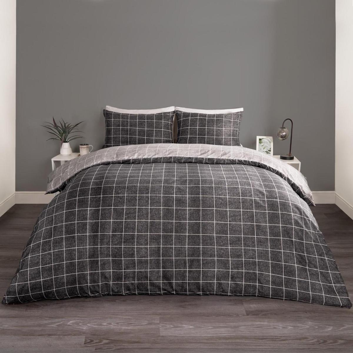 Check Duvet Cover Set - Black / Double