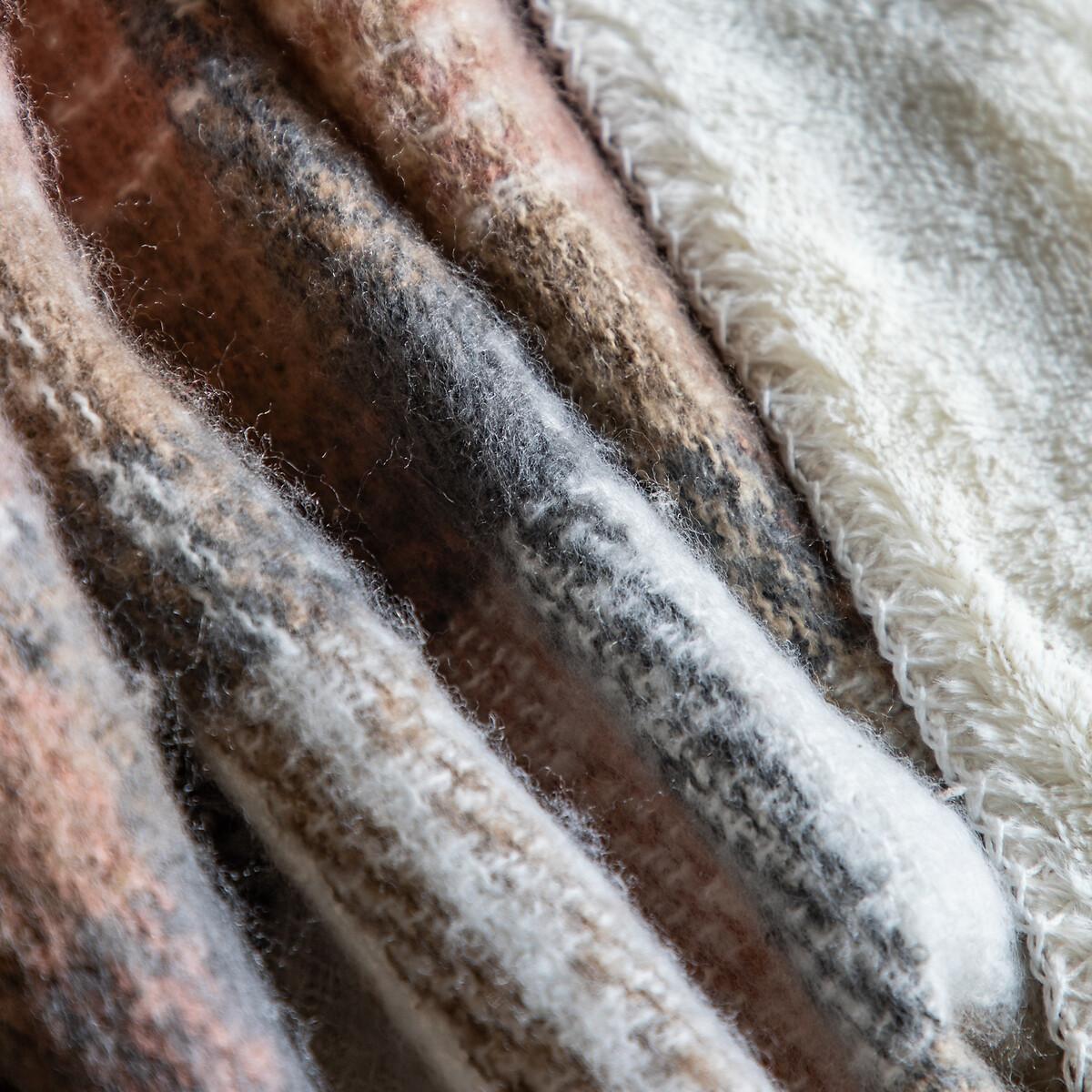 Check Natural Faux Mohair Fur Throw