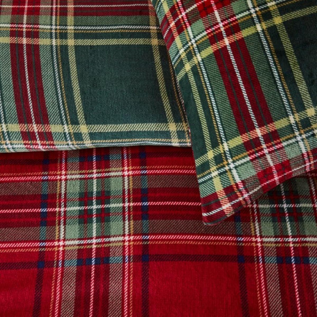 Check Printed Fleece Duvet Cover and Pillowcase Set