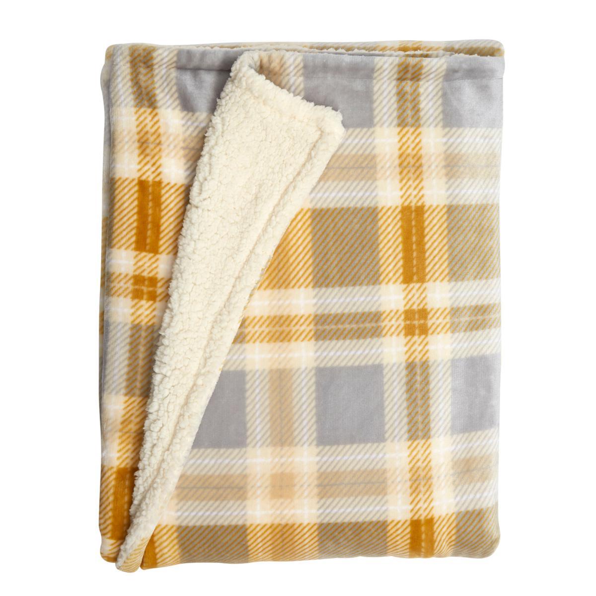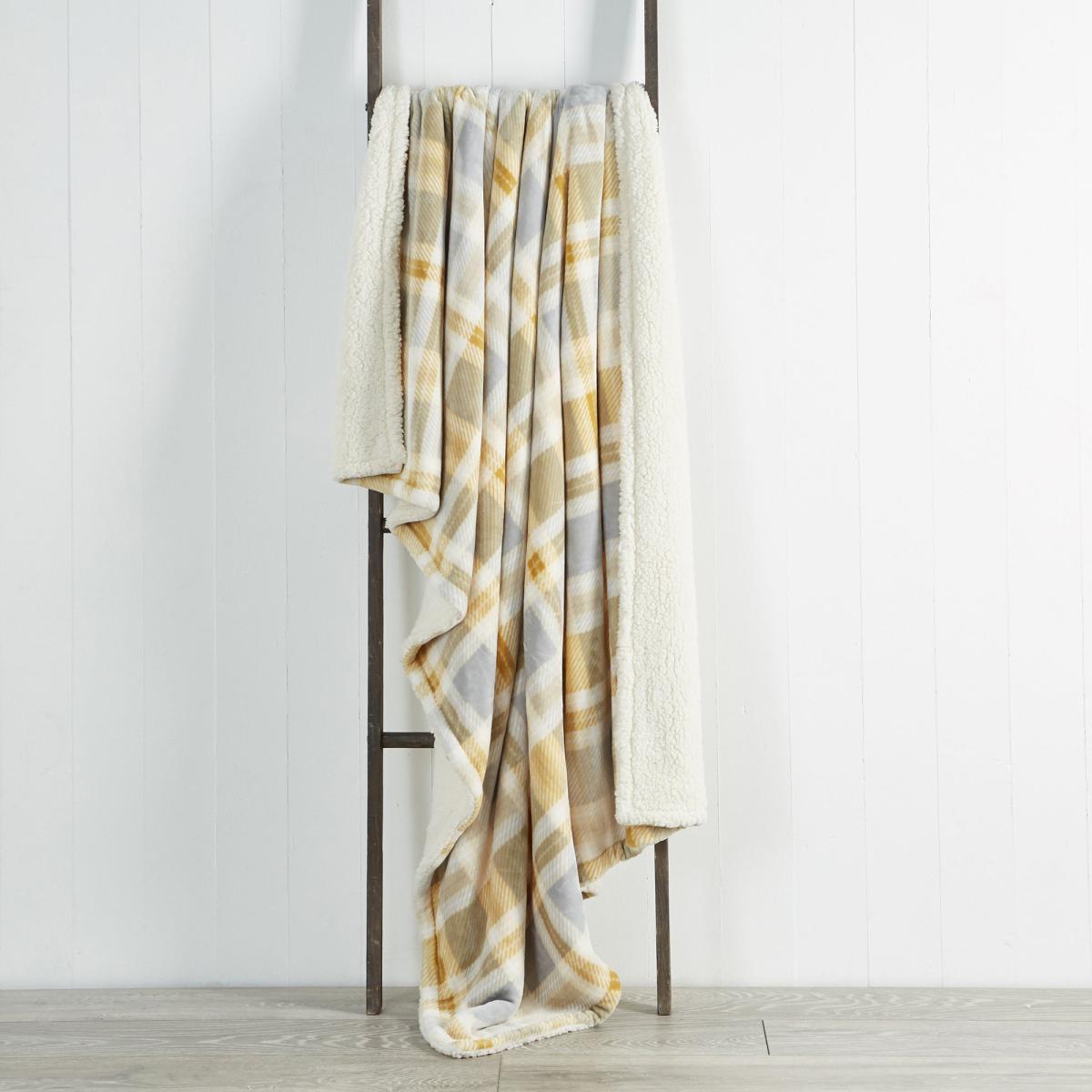 Check Sherpa 130cm x 180cm Throw Ochre