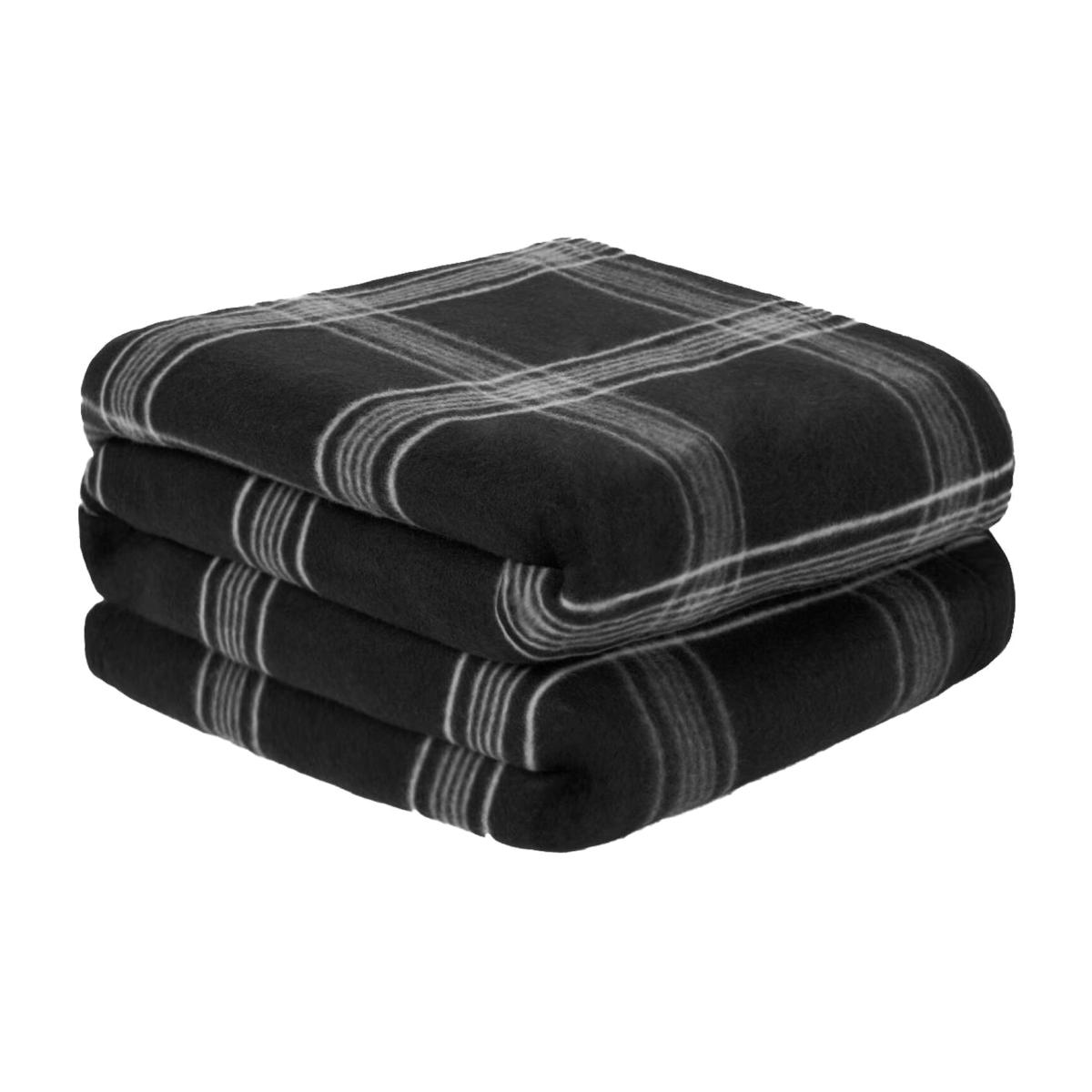 Check Tartan Fleece Throw Blanket - Black