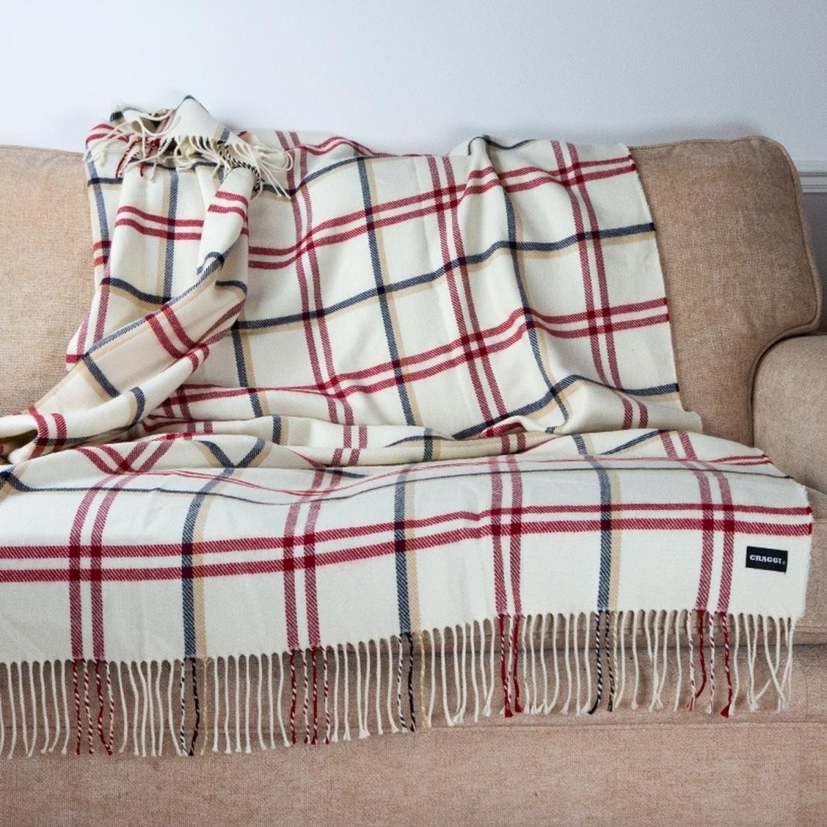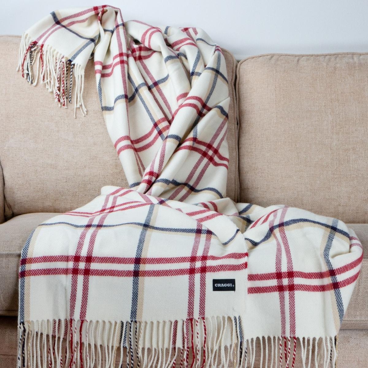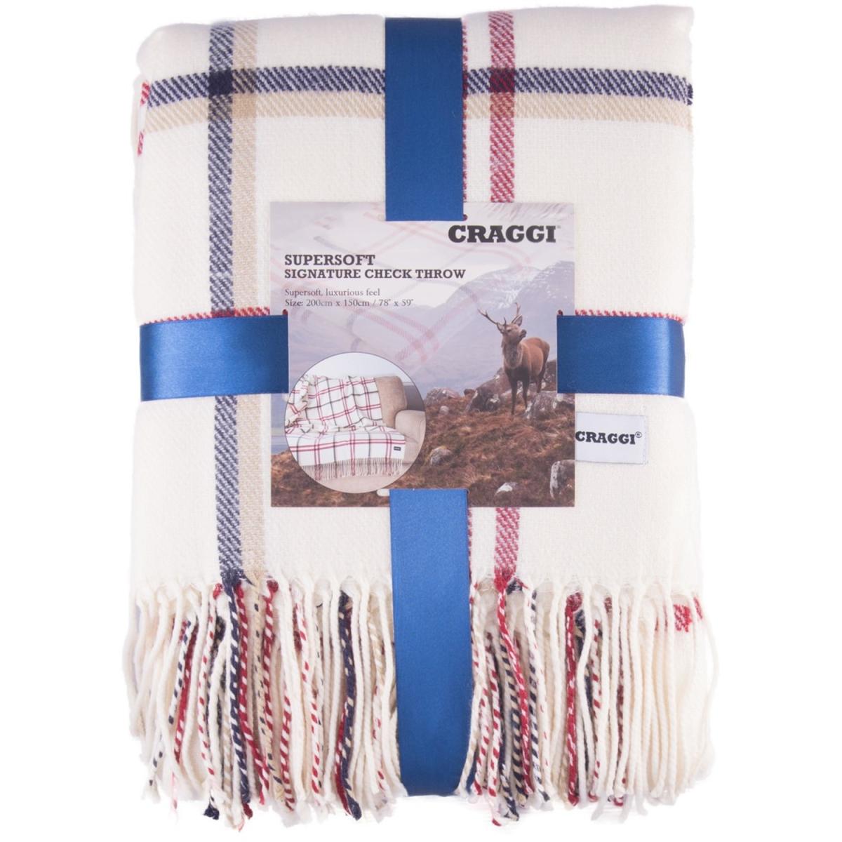 Berridale Check Super Soft Throw by CRAGGI is the perfect Blanket to snuggle under indoors or outside! A wonderful rich Red and Blue check on a Cream fabric base, this throw comes with two straight and two fringed edges. 100% Super soft Acrylic and beautifully packaged with ribbon to make the perfect present.