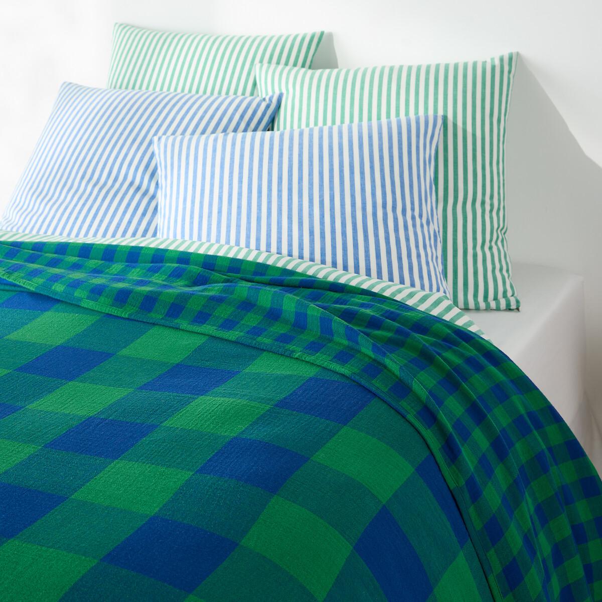 The Calix cotton muslin bedspread has a comforting softness. features small and large check patterns on either side. Designed by La Redoute Intérieurs. Cotton muslin is light, supple and super soft. Naturally textured, they do not require ironing and become more beautiful over time. Product Details • 100% cotton • Cotton muslin • Two-tone check print • 2-sided, large squares on one side and small squares on the other Care Advice • Machine washable at: 40°C • By washing your laundry at 30°C instead of 40°C, you limit energy consumption. Dimensions • 140 x 200cm • 180 x 230cm • 230 x 250cm • OEKO-TEX® Standard 100. Standard 100 certification by OEKO-TEX® tests textile products for harmful substances via an independent, international label.