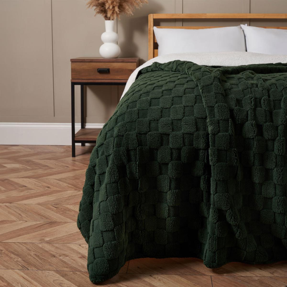 Checkerboard Throw with Sherpa, Green