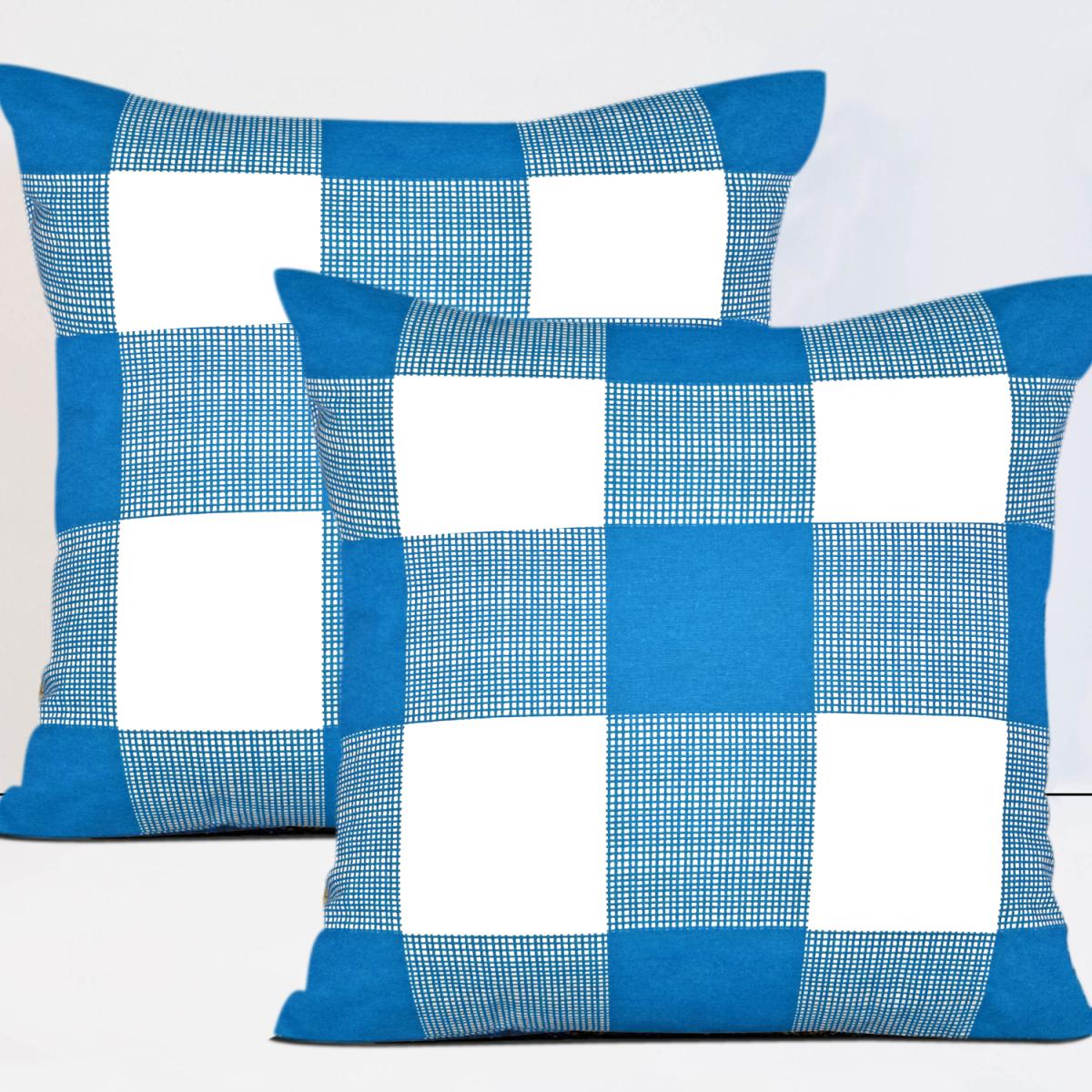 Checks Cushion Covers Set of 2 - Teal - Teal