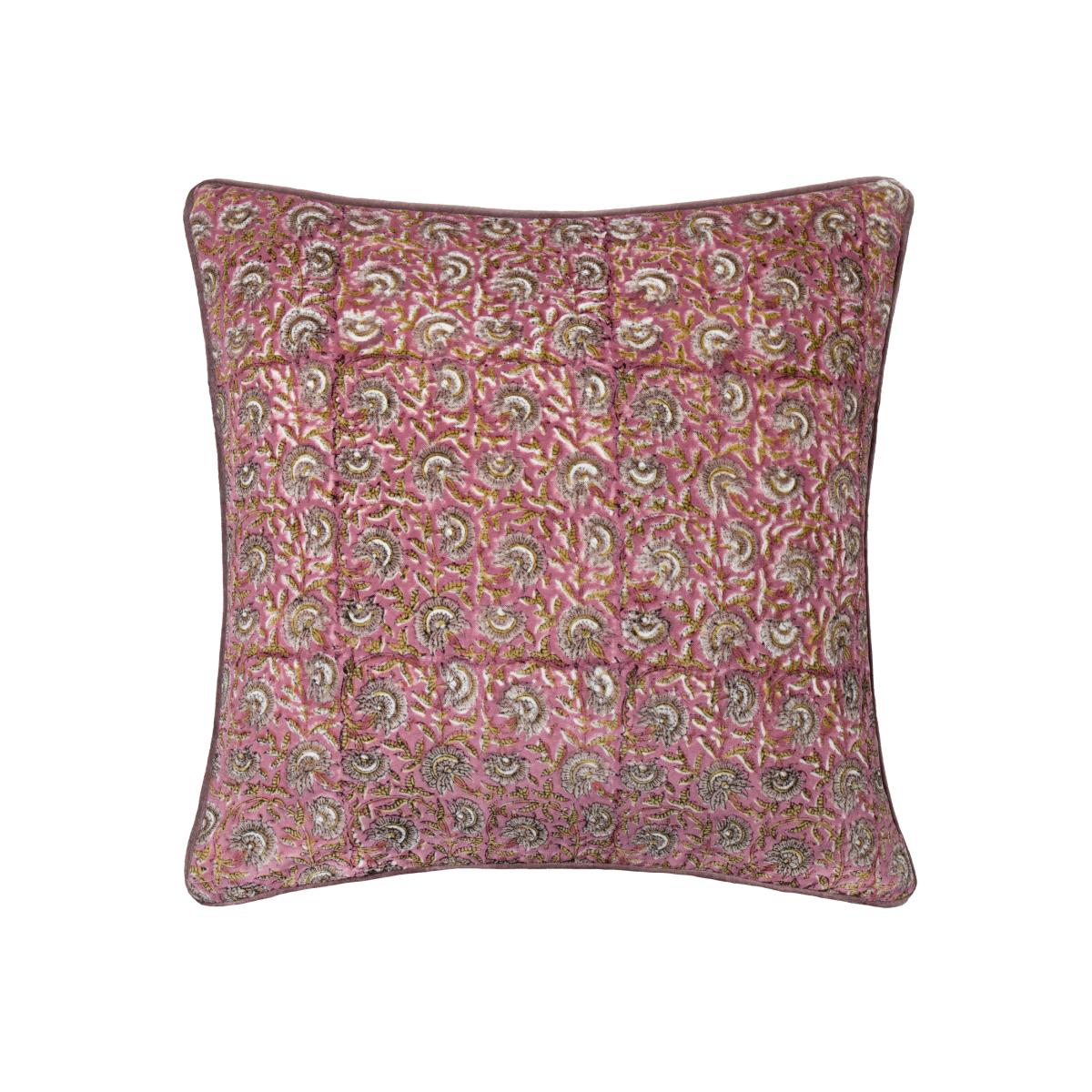 The Chedworth cushion features a vibrant floral design printed on luxurious velvet fabric, complemented by a contrasting plain reverse and piped trim for added sophistication. Made from 100 cotton, it showcases a remarkable block print pattern inspired by Indian textile heritage, offering an artisan craft in a rich and sophisticated palette.