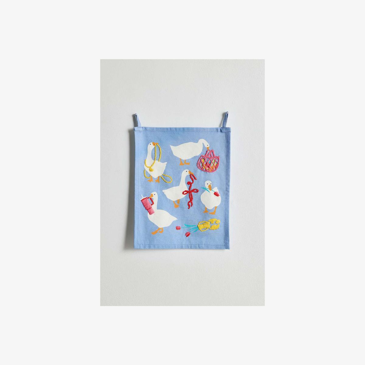 Add some fun to your wall with this cheeky goose tapestry. Crafted from cotton with embroidered detailing and two hooks for simple hanging. **Content + Care** \- 100% Cotton \- Spot clean **Size** \- 35.6cm x 28cm