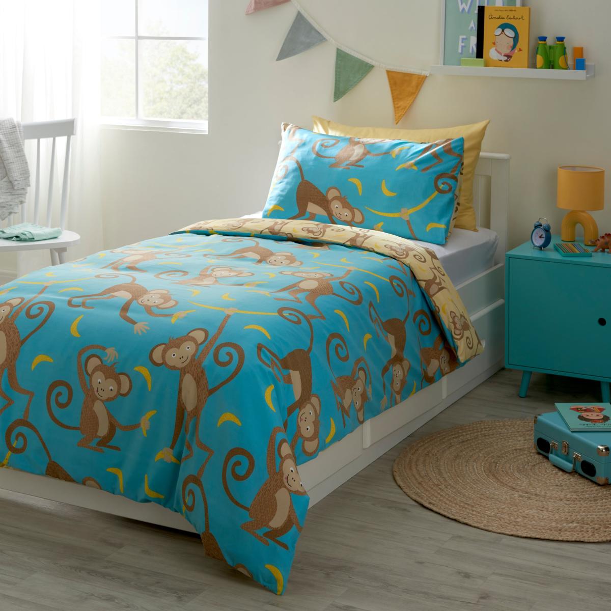 Cheeky Monkey Microfibre Duvet Cover and Pillowcase Set MultiColoured