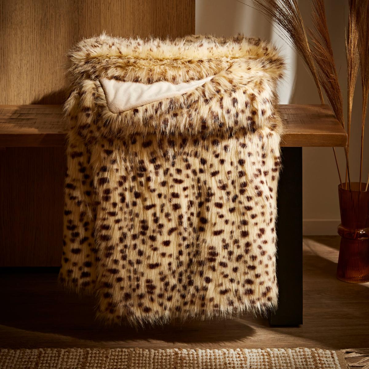 Crafted with faux fur material on one side and a smooth shimmering reverse, this throw is super soft and cosy and comes in a gorgeous cheetah pattern. Perfect for bringing comfort and warmth to your home. Dry clean only.