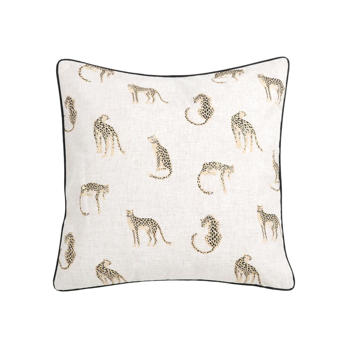 This Cheetah Metallic Cushion is a super chic way to update your living space. Featuring an illustrated cheetah design and metallic detailing, this trendy pillow is sure to impress. It has a natural textured fabric and is finished with a black piped edge for a contemporary finish. This is perfect for any animal lover for a stylish safari vibe in your home.