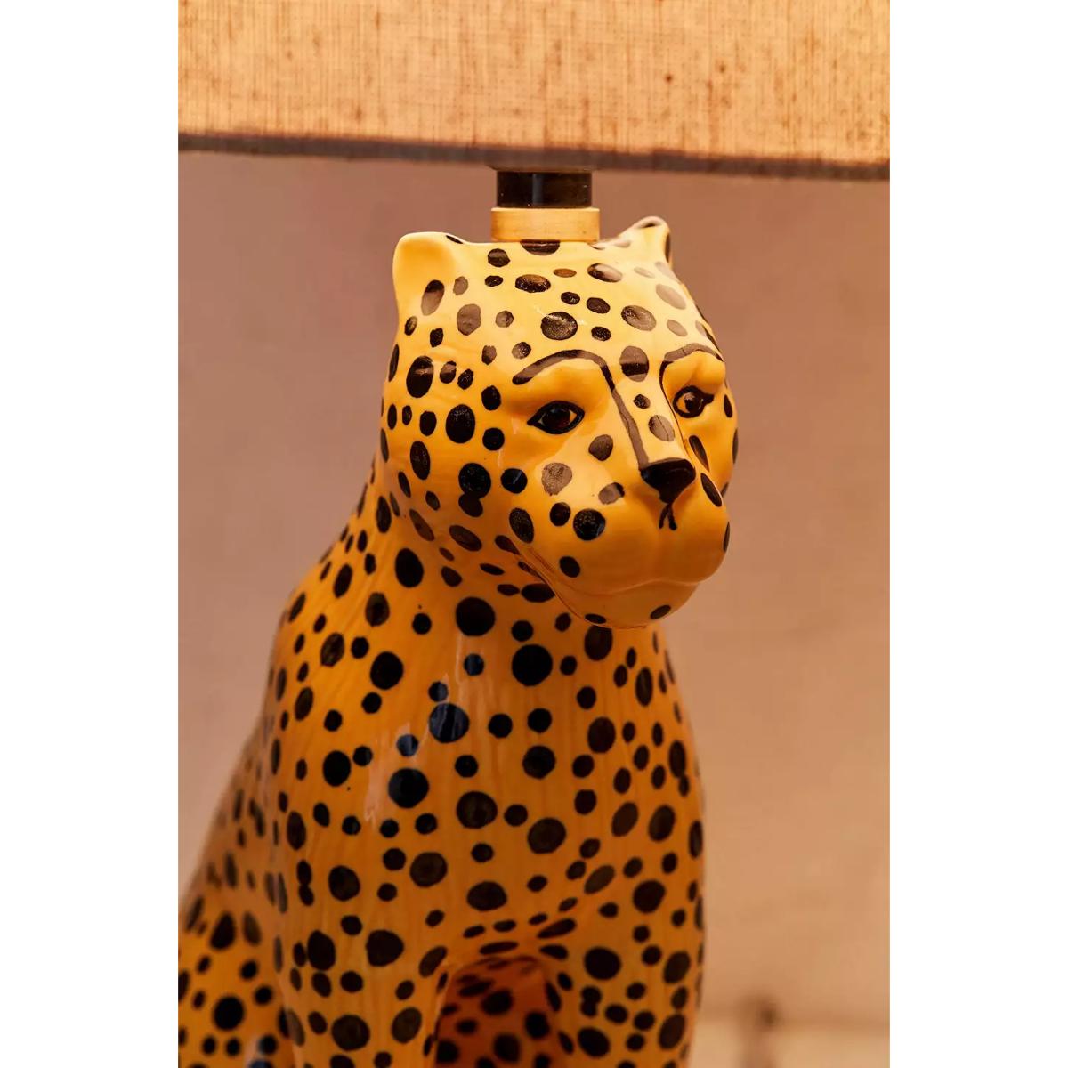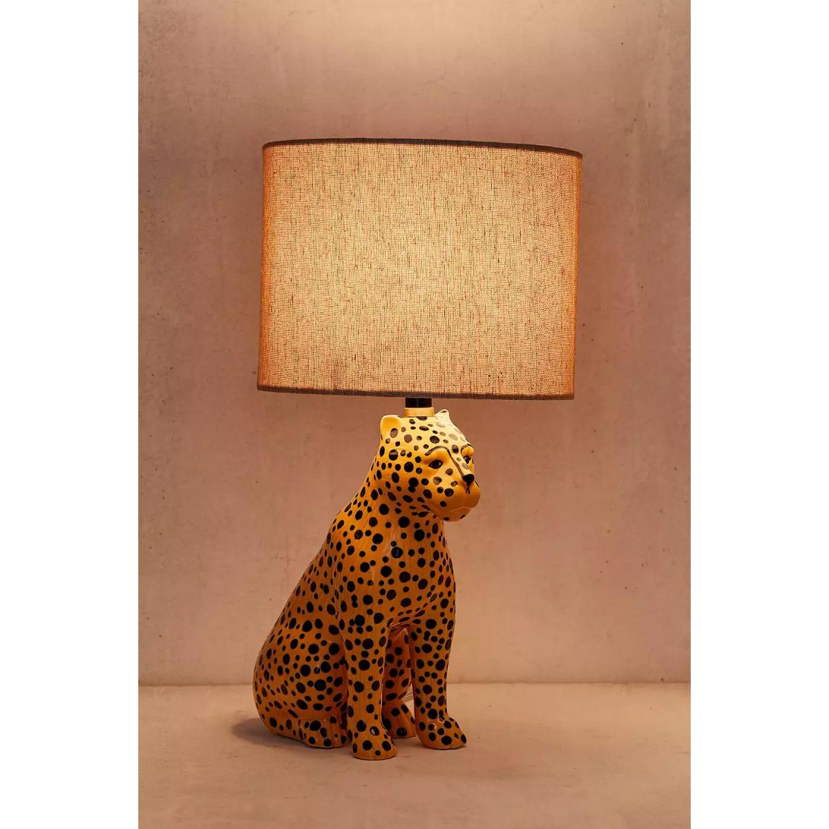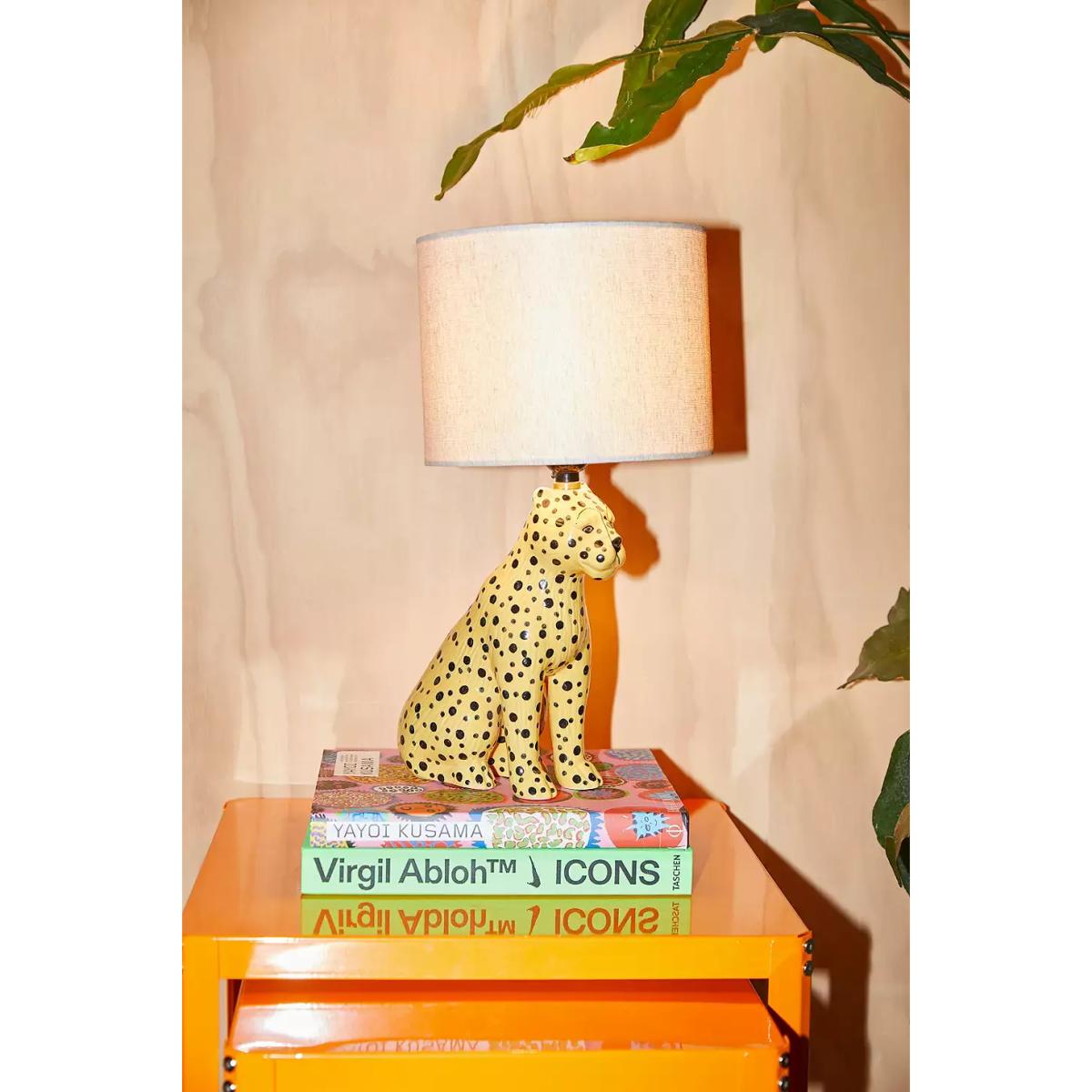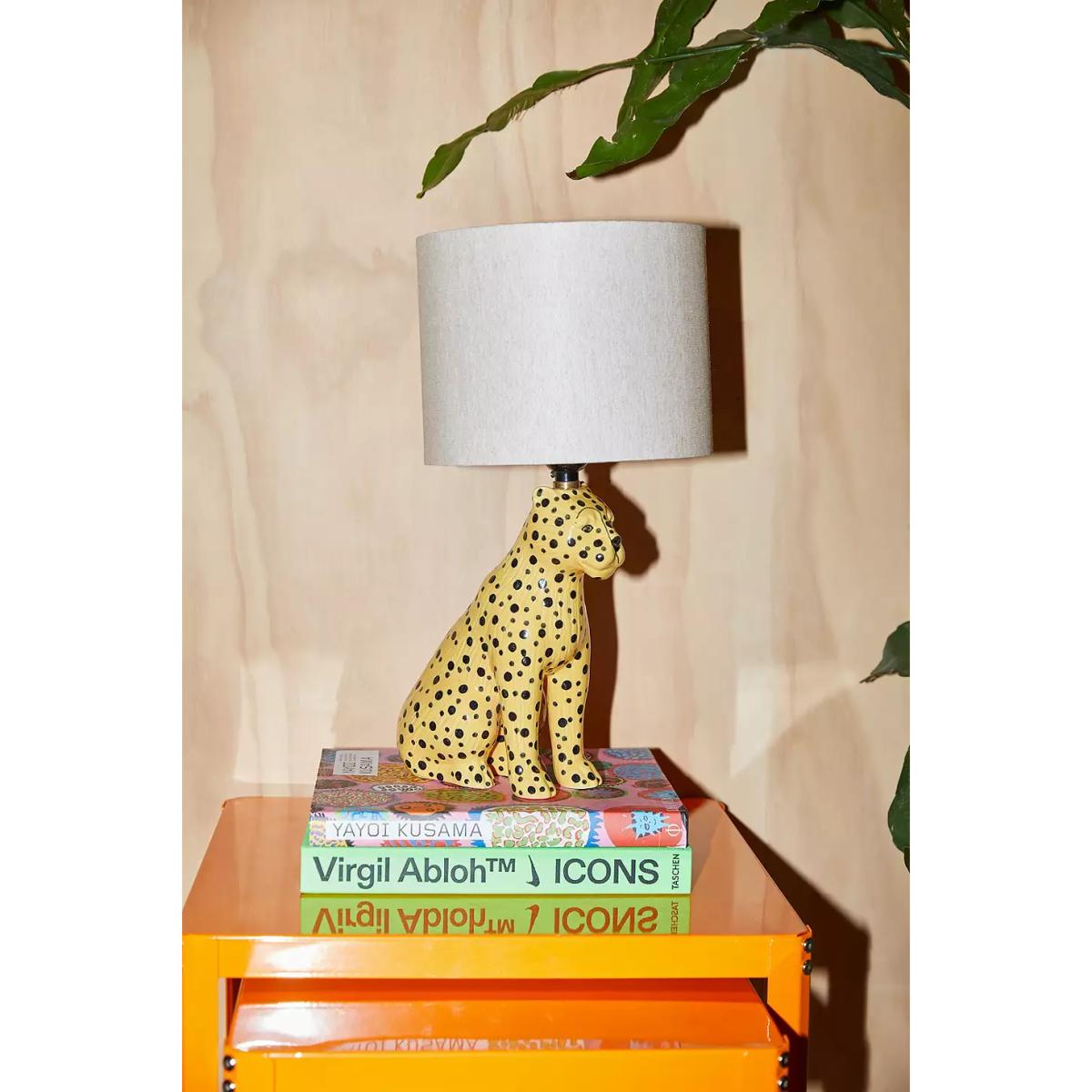 Kitschy cheetah lamp for adding a bold finish to your space. Features a ceramic big cat base with spots painted on and a cylindrical textile shade. Plug in to power on and brighten up your room. **Content + Care** \- Ceramic, Fabric, Metal \- Wipe clean \- Requires one 60W bulb (not included) \- Includes UK plug **Size** \- Dimensions: L: 22.8cm x W: 22.8cm x H: 43.1cm \- Cord length: 250cm \- Weight: 4.14 lbs \- Shipping package dimensions: L: 33cm x W: 33cm x H: 38.1cm \- Shipping package weight: 11.02 lbs