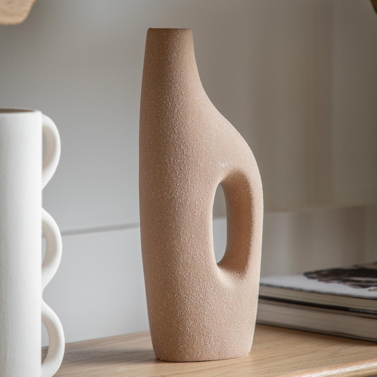 I love this vase's modern, sculptural shape-it’s a standout piece that works well in contemporary and minimalist interiors. Its neutral sand hue makes it versatile enough to sit comfortably in both colour-themed rooms and more neutral spaces. For styling, I recommend pairing it with dried grasses or simple stems for a subtle, elegant look, or leaving it as a statement on its own to highlight its unique silhouette. Practical tip: due to its shape, it’s best suited for longer-stemmed flowers or arranged greenery to maintain balance and visual interest.