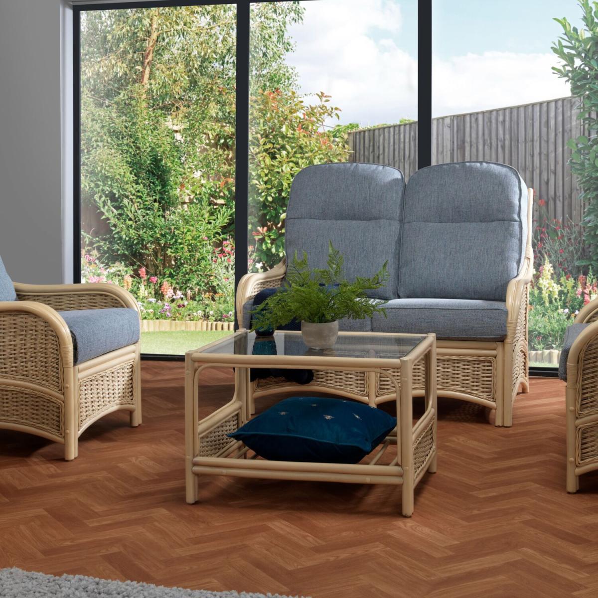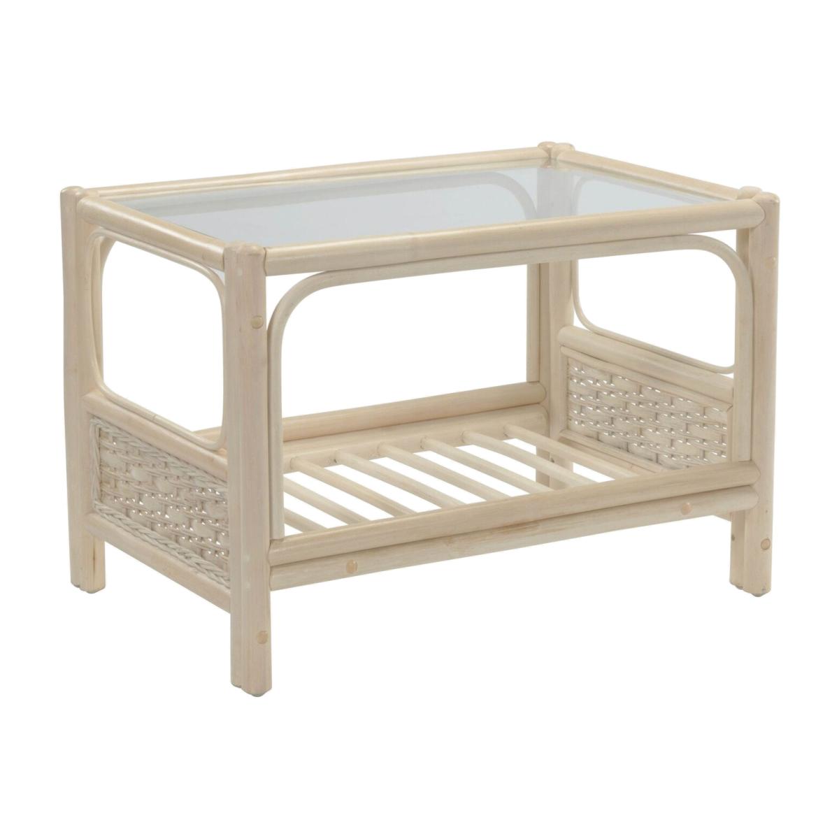 A sustainable natural rattan coffee table with 5mm toughened glass top and bottom shelf