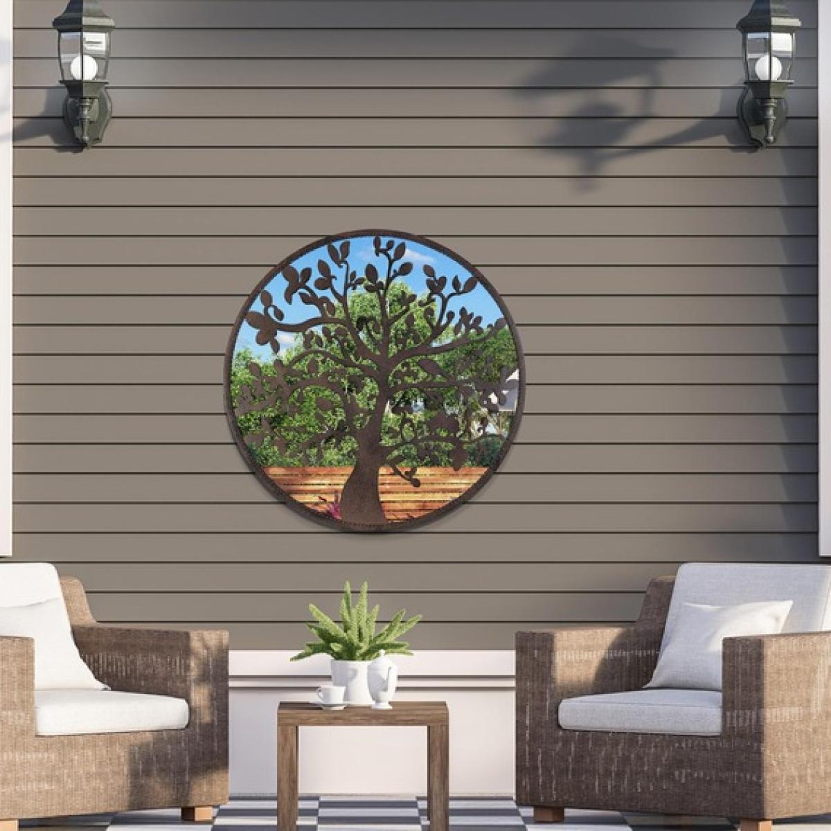 Chelsea Metal Round Shaped Tree Garden Mirror - Brown