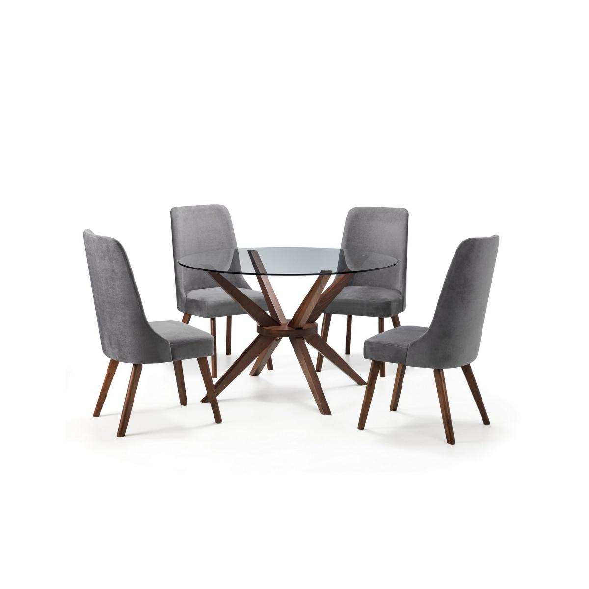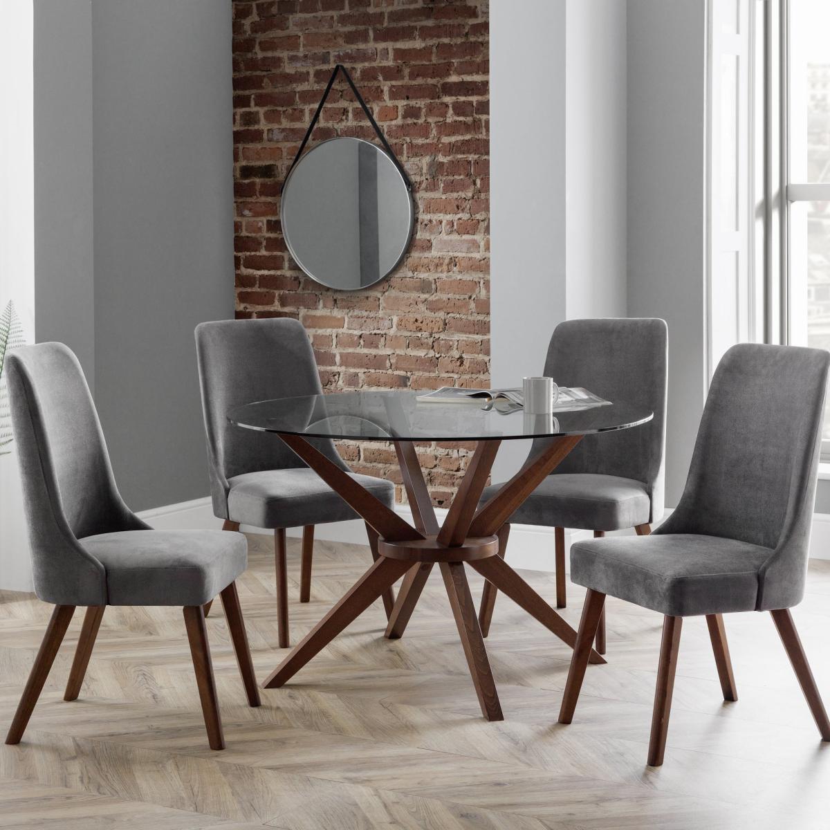 Chelsea Small Round Glass Dining Table with 4 Huxley Dining Chairs Brown