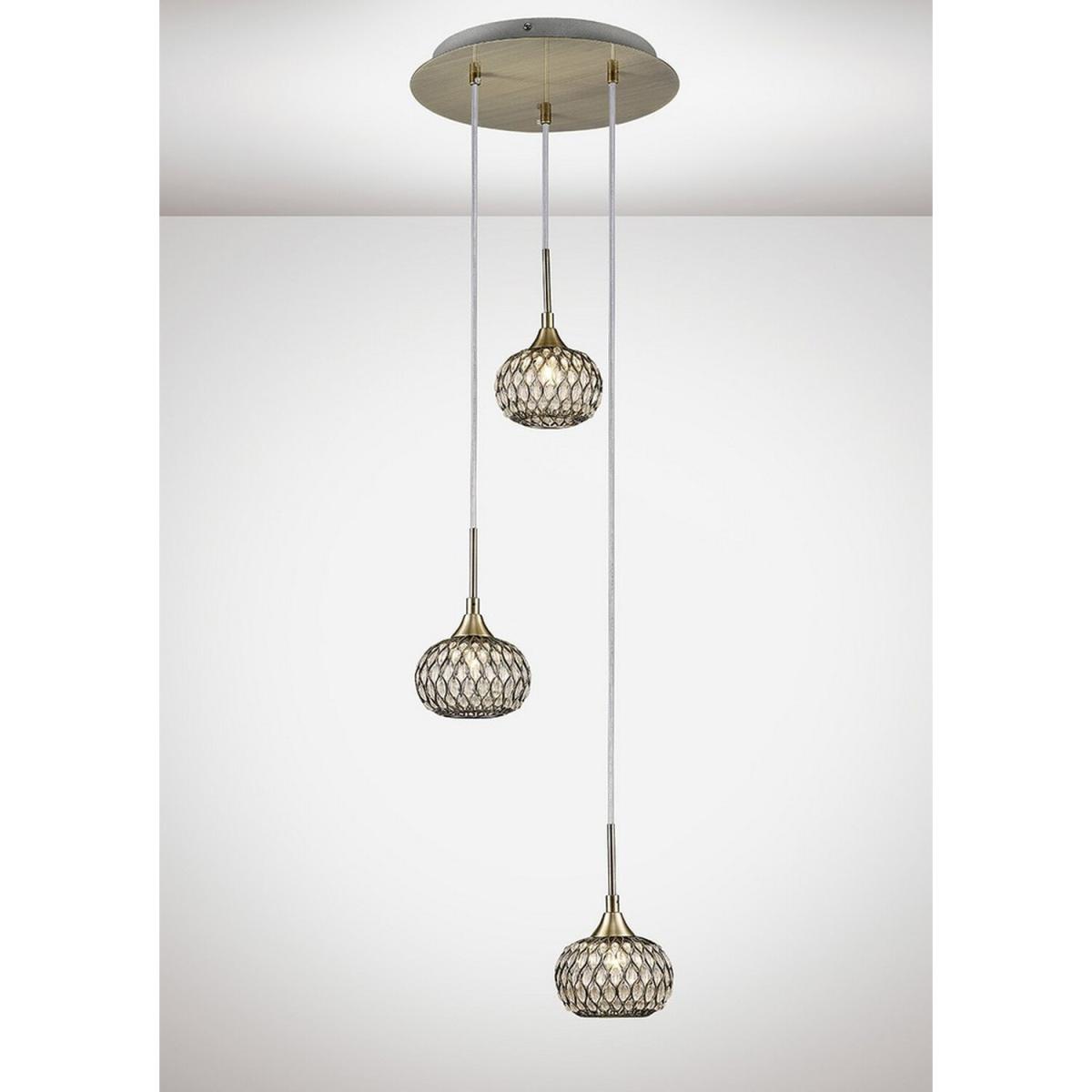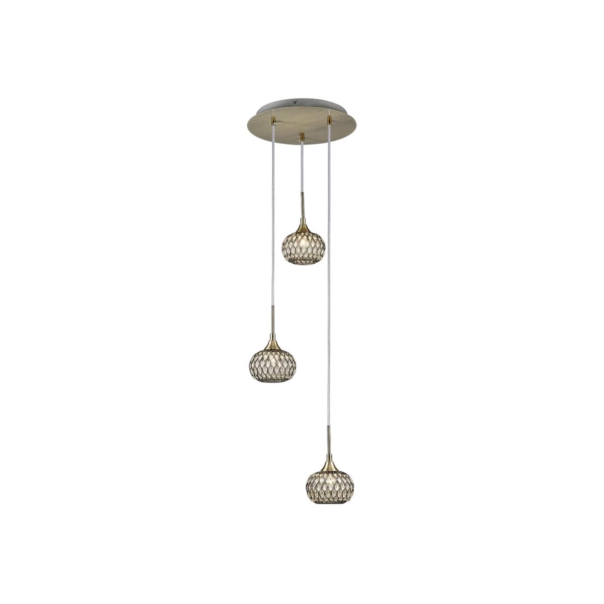Chelsie Ceiling Cluster Pendant 3 Light Round Antique Brass, Clear Glass - Antique Brass