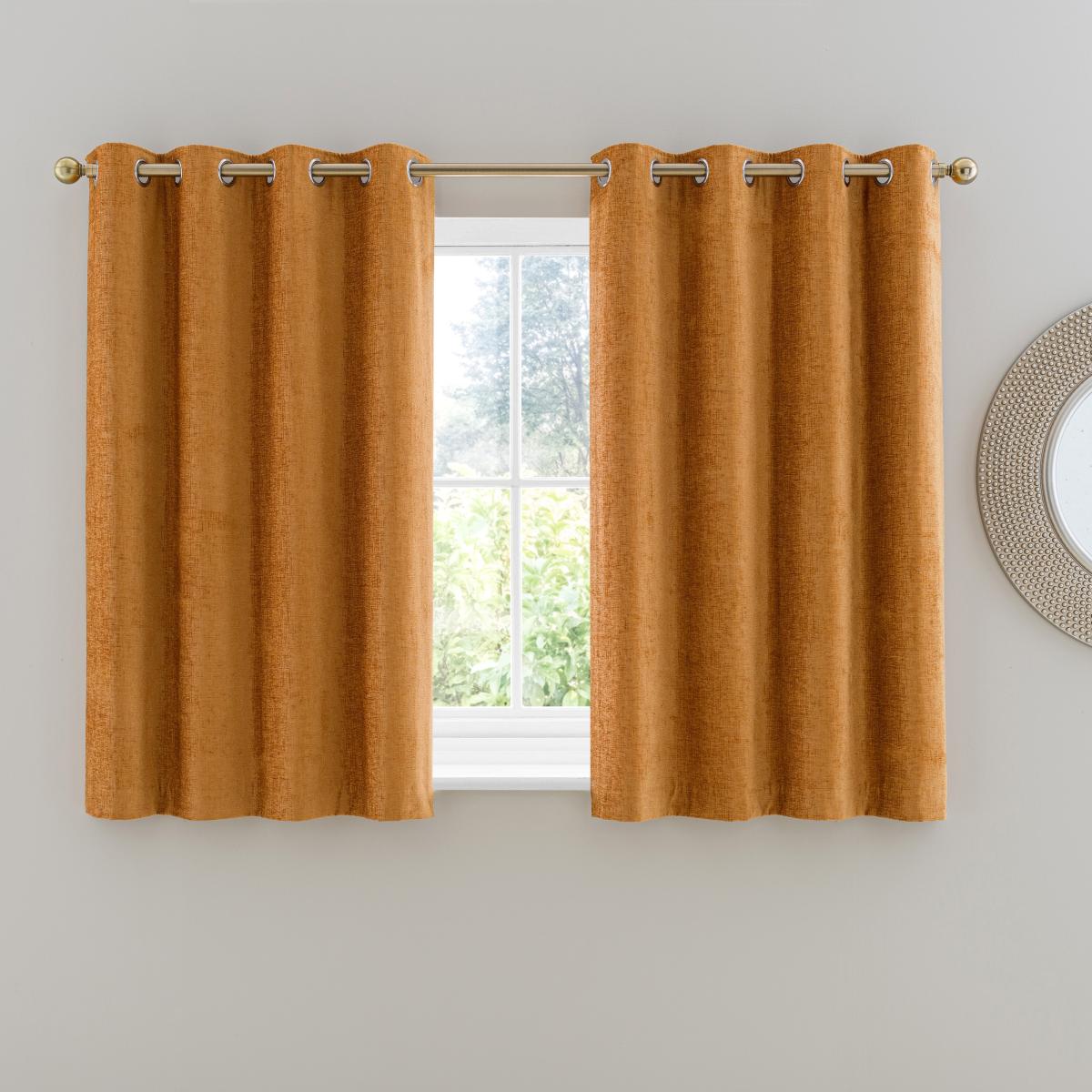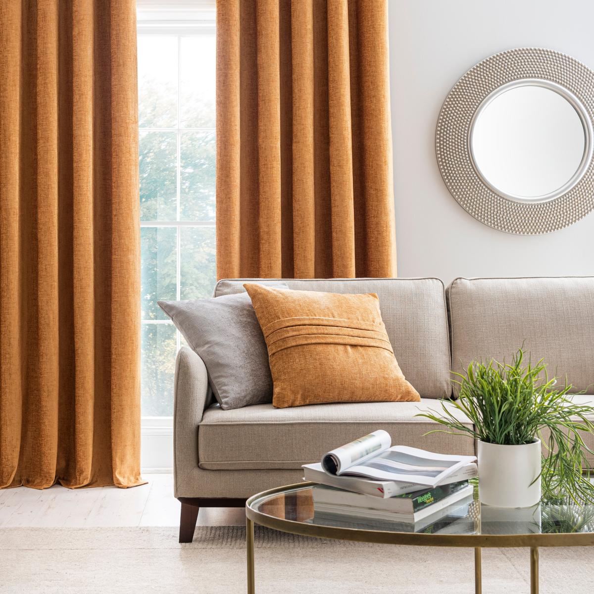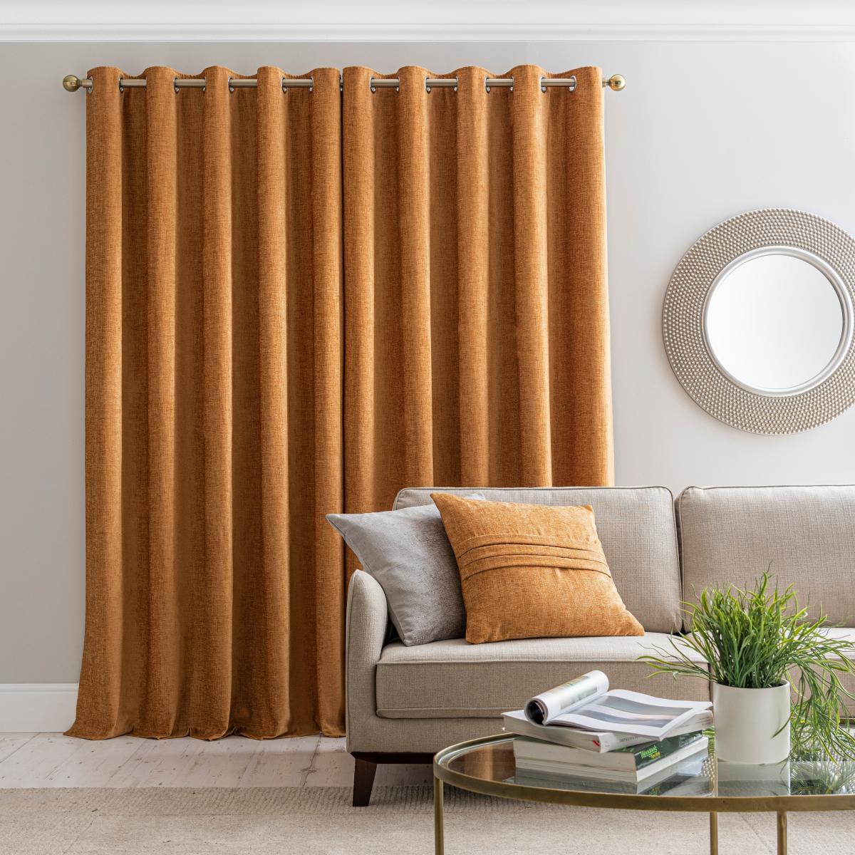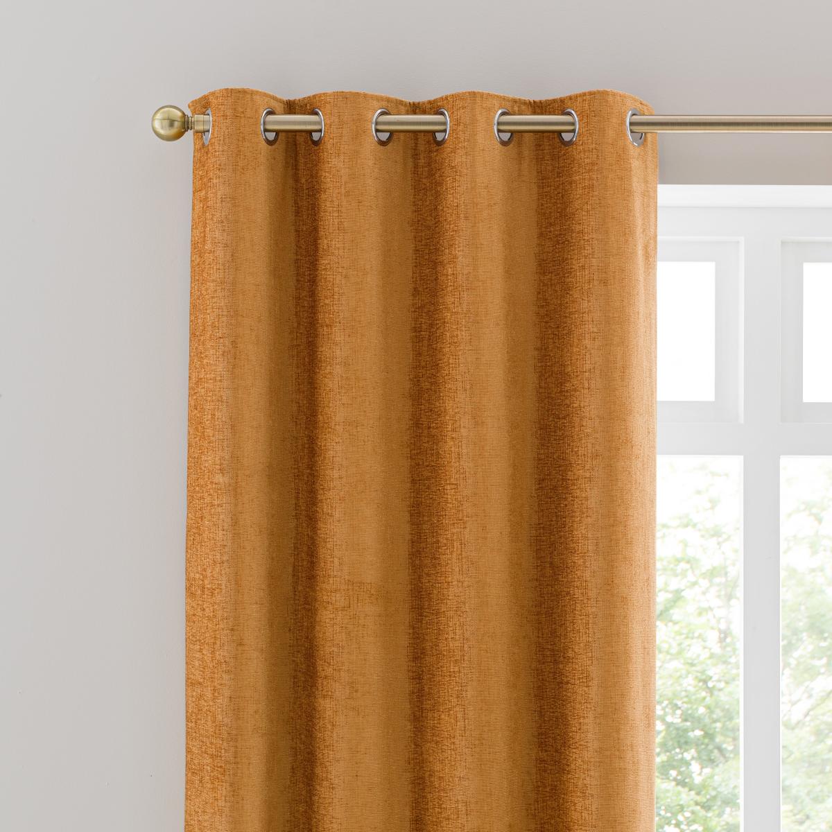 Part of our Luxury collection, these stunning eyelet curtains are fashioned from a luxuriously soft and smooth chenille fabric and feature a subtle sheen finish for a sophisticated look. Featuring an amber gold colourway, these curtain panels will add warmth into your home. These curtains are ideal to complement a variety of traditional and modern decors and are designed to effortlessly transition with your style without ageing a day. Fully lined, these curtains will improve insulation and a provide a gorgeous undulating drape. These curtains are crafted from durable materials for added longevity and are finished with a modern eyelet header for easy hanging. This collection is verified by OEKO-TEX® and independently tested for harmful substances as well as manufactured using sustainable processes under socially responsible working conditions.
