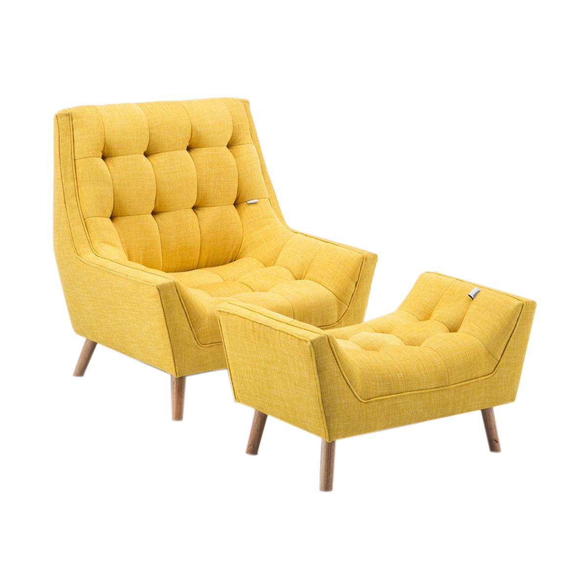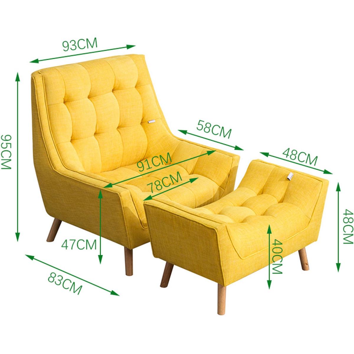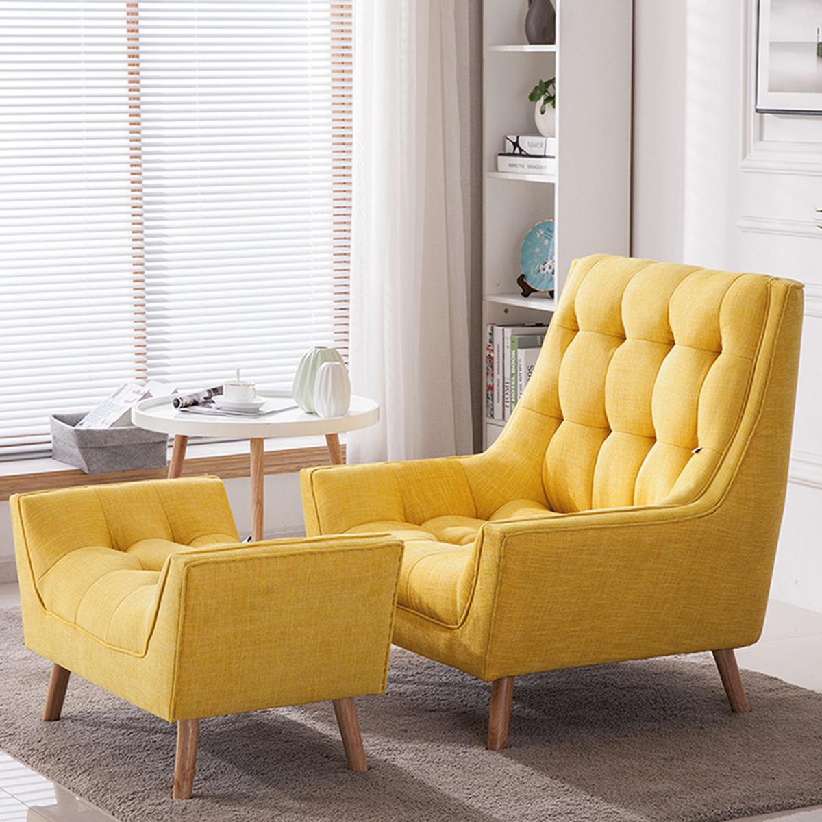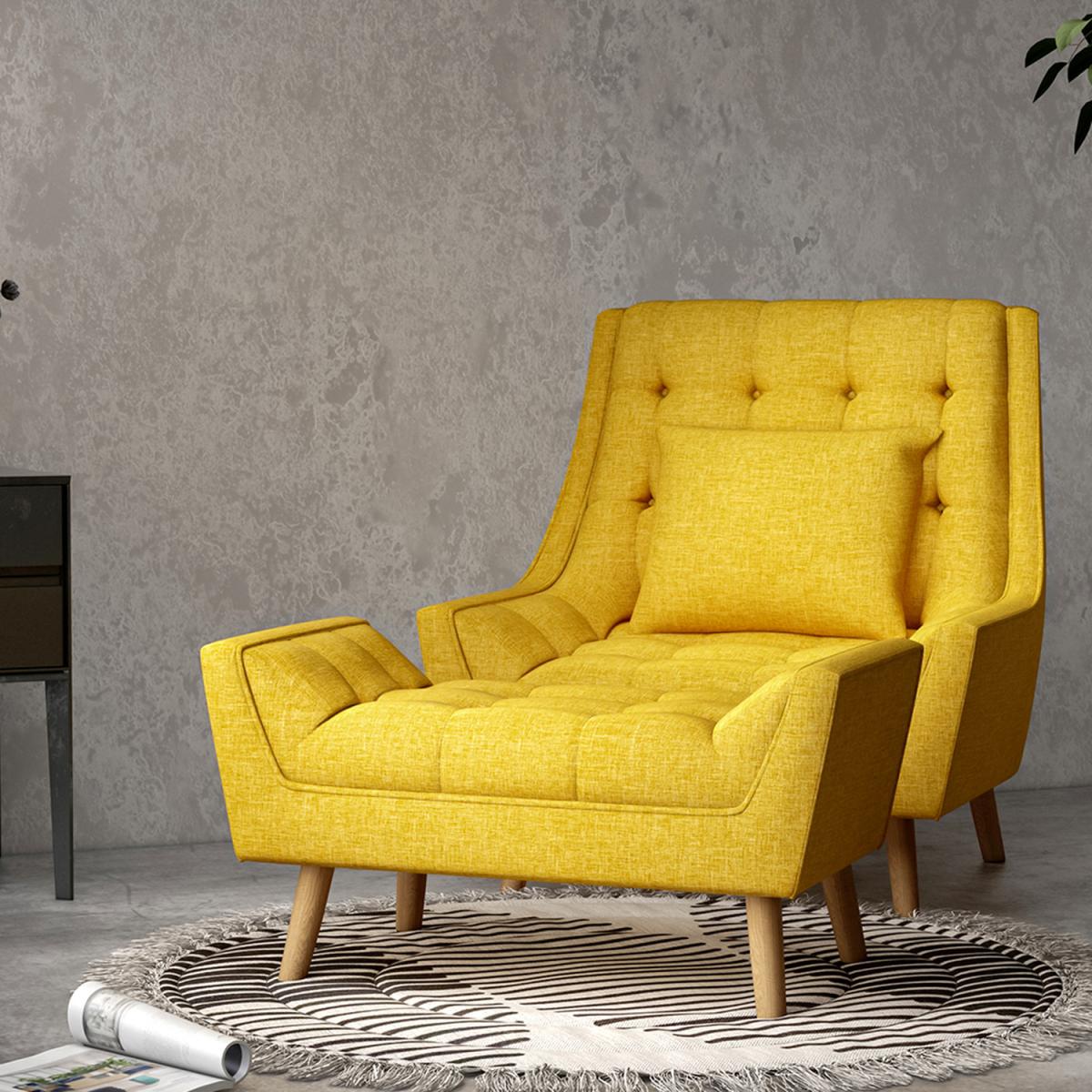 This cheerful yellow armchair and footstool combo makes a bold statement and works particularly well in contemporary or retro-inspired interiors. I love its vibrant hue, which can inject a pop of colour into neutral spaces or complement other bright accents. The chenille fabric adds a soft, inviting texture, making it a comfortable spot for relaxing. To style it effectively, consider pairing it with minimalistic furniture to let the colour stand out, or soften the look with neutral textiles and decorative cushions for a more layered aesthetic. Practical tips include placing it near natural light to enhance its colour and keeping accessories simple to avoid overwhelming the space. It’s a versatile choice for living rooms, reading nooks, or bedrooms looking for a touch of personality.