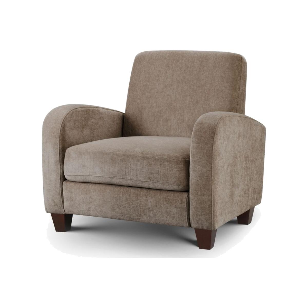 This armchair adds a modern touch to any room, with high-grade foams within luxurious fabric. It is crafted from a strong hardwood frame, ensuring long-lasting durability.