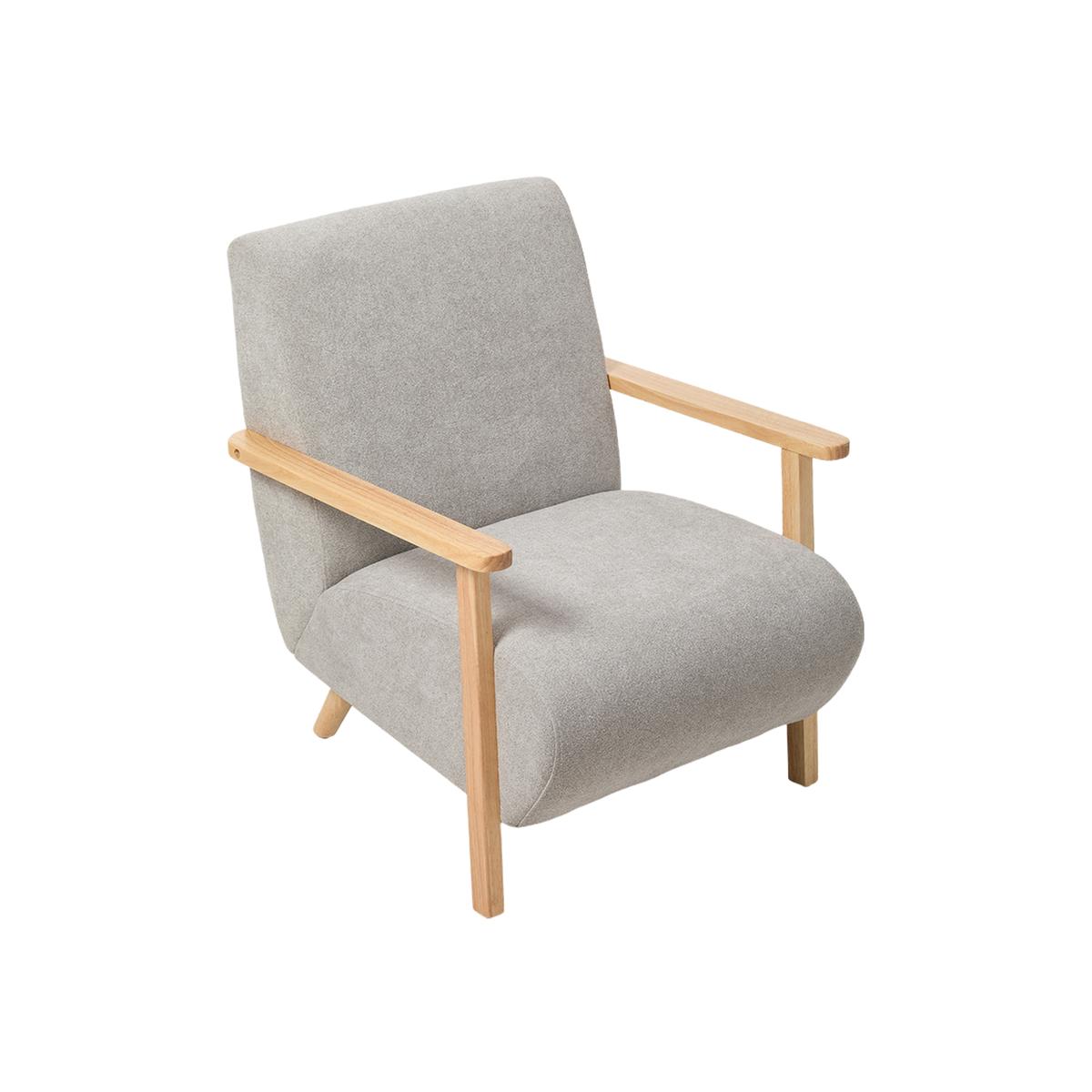 Chenille Armchair with Wooden Arms and Modern Style - Grey