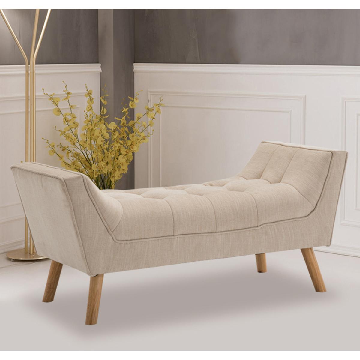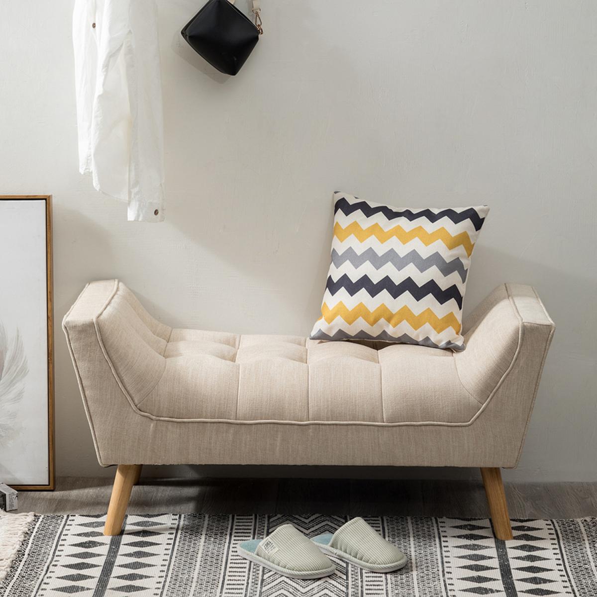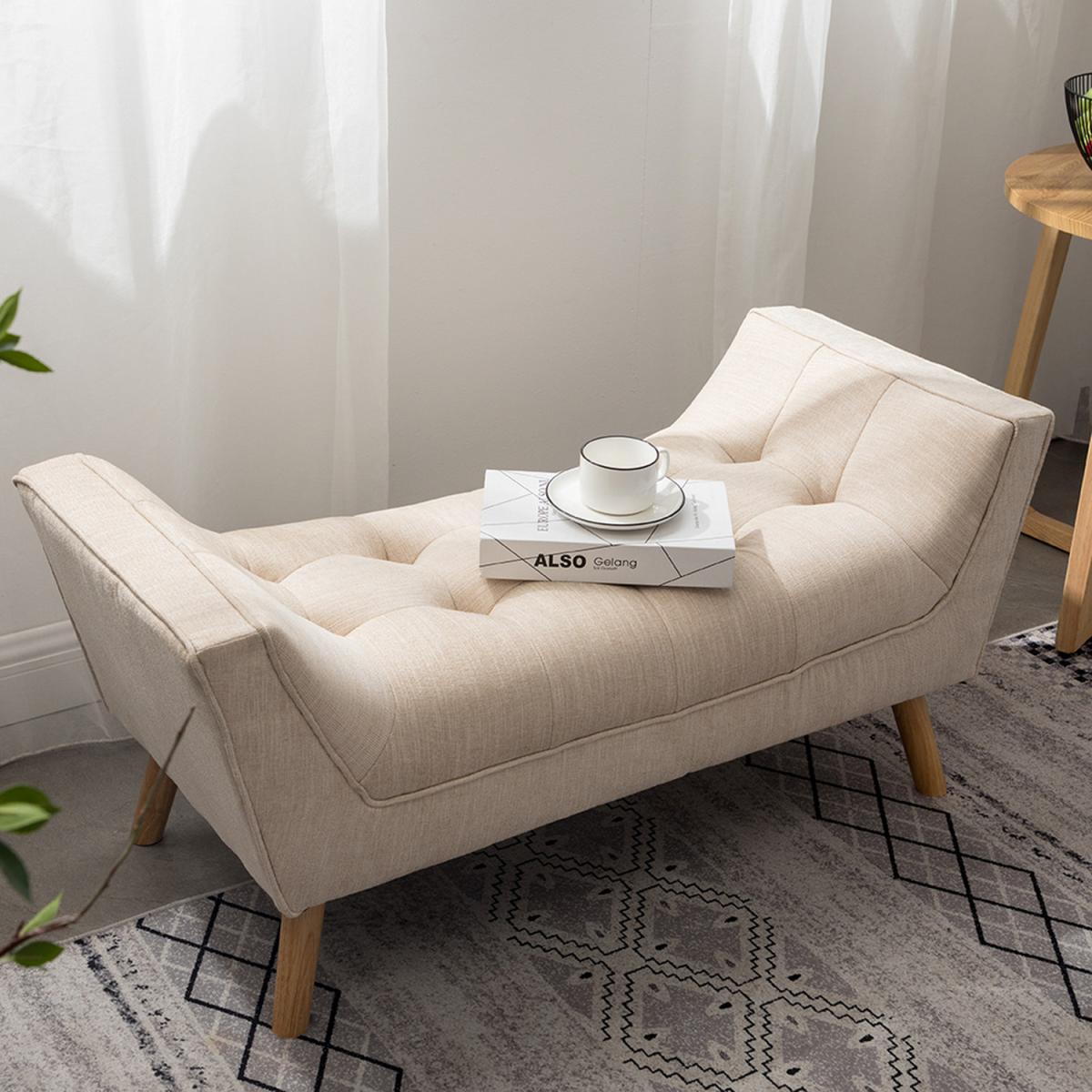 Chenille Button Upholstered Ottoman Window Seat Bed Bench - Beige