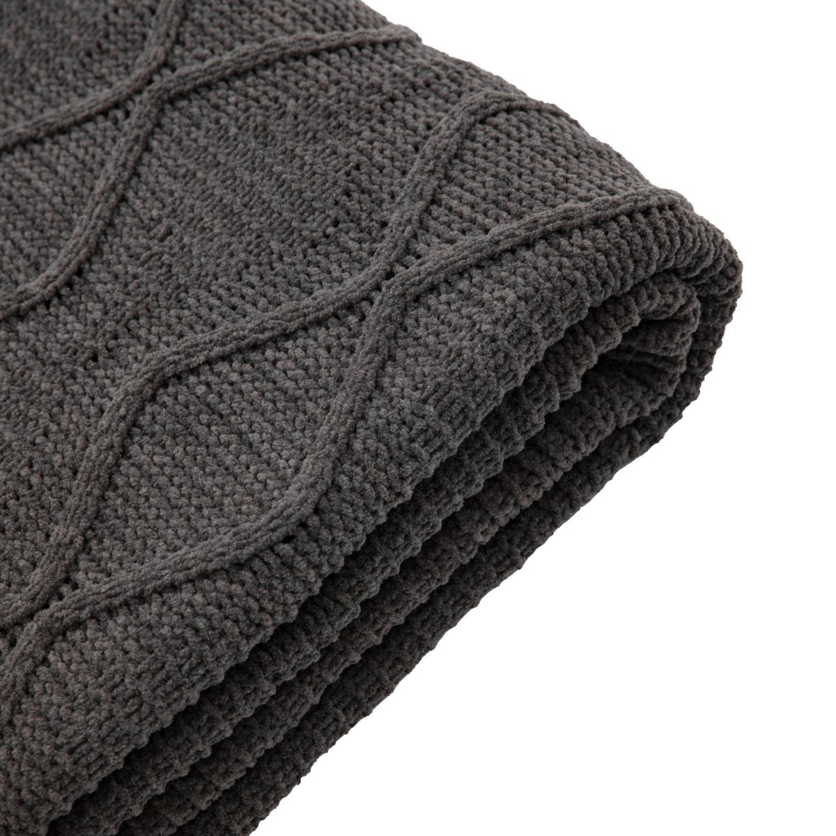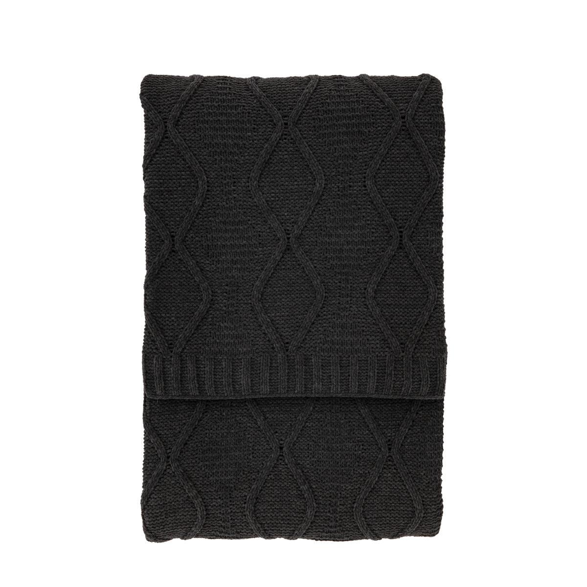 Super soft chunky cable knit diamond throw in grey with a rib knit border. This throw offers a cosy and rustic feel and is available in 2 colourways. Crafted in India. Super soft chunky cable knit diamond throw in grey with a rib knit border. This throw offers a cosy and rustic feel and is available in 2 colourways. Crafted in India.
