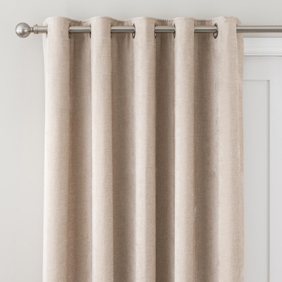 Crafted from super soft chenille yarn, this cream eyelet door curtain is ideal for adding a touch of luxury to your home and features subtle sheen finish. The modern eyelet header allows for easy installation and creates loose, elegant folds. This curtain panel features a thermal coating to improve insulation and is available in a choice of sizes to suit your requirements. Professional cleaning in Hydrocarbon or equivalent reccomended.