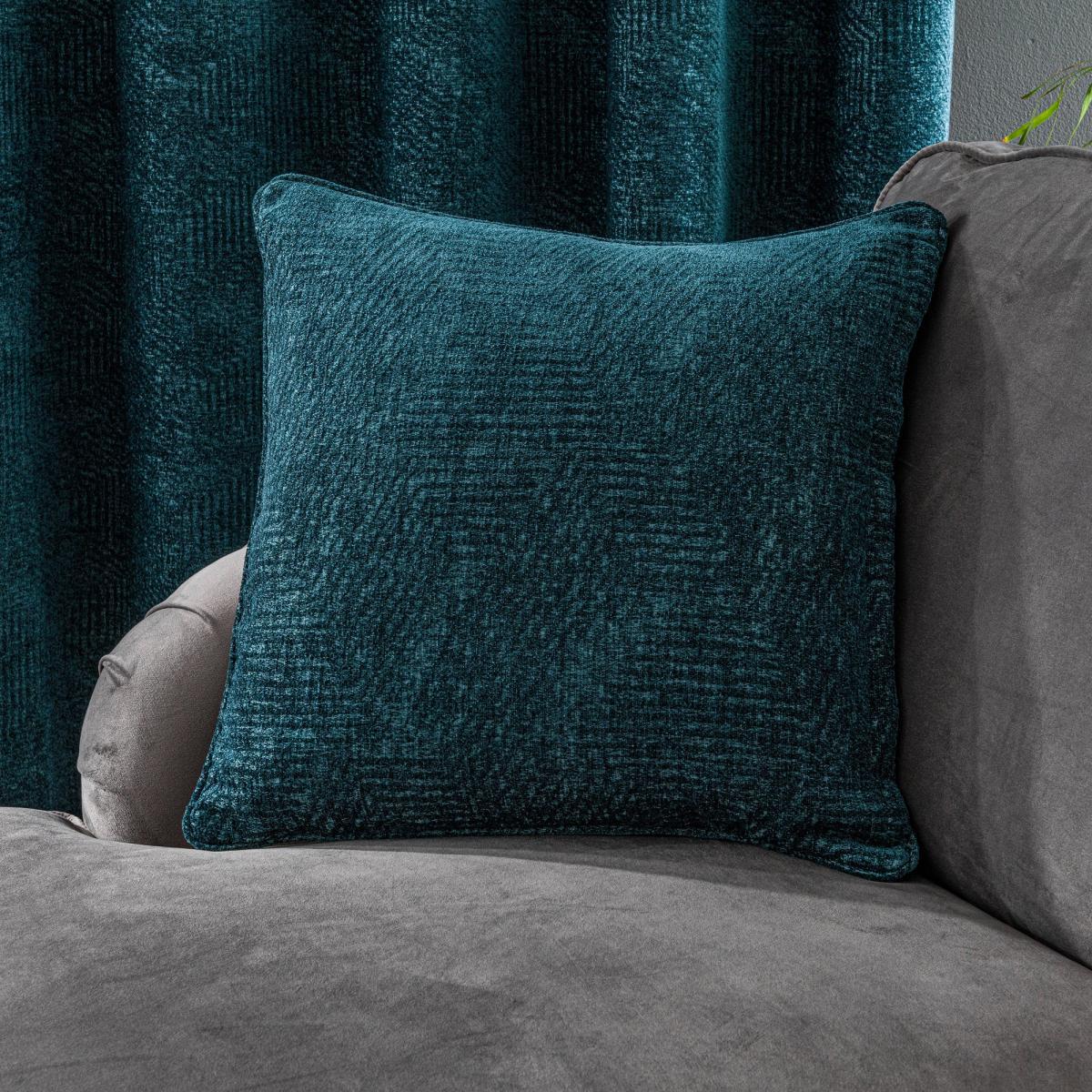 Crafted from a sumptuously smooth chenille yarn for a luxurious texture, our luxurious cushion features a modern geometric jacquard design in a peacock colourway to create an opulent touch. Finished with a piping detail, the cushion comes complete with a feather filled insert for long lasting comfort. Coordinating curtains in a variety of sizes available to purchase separately.