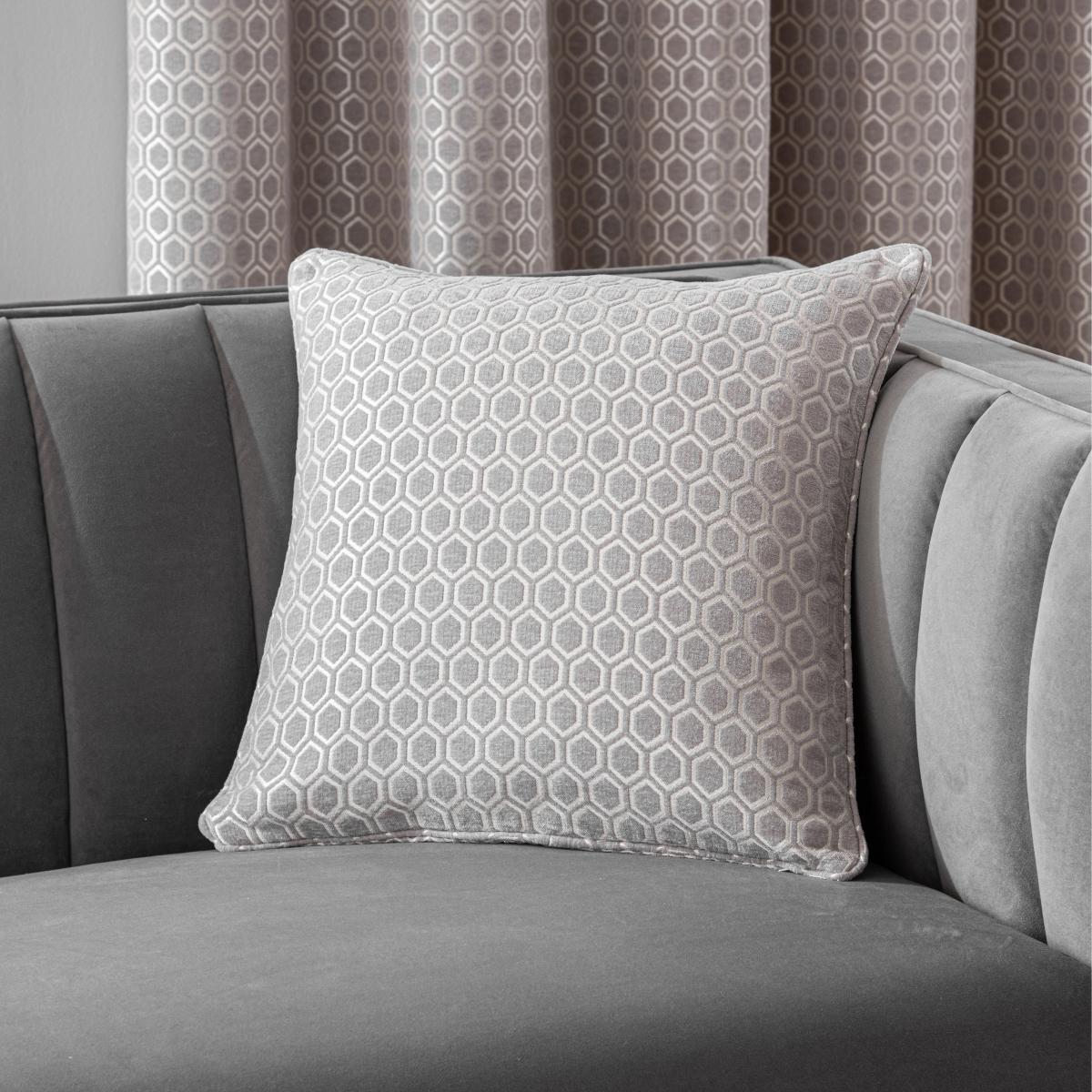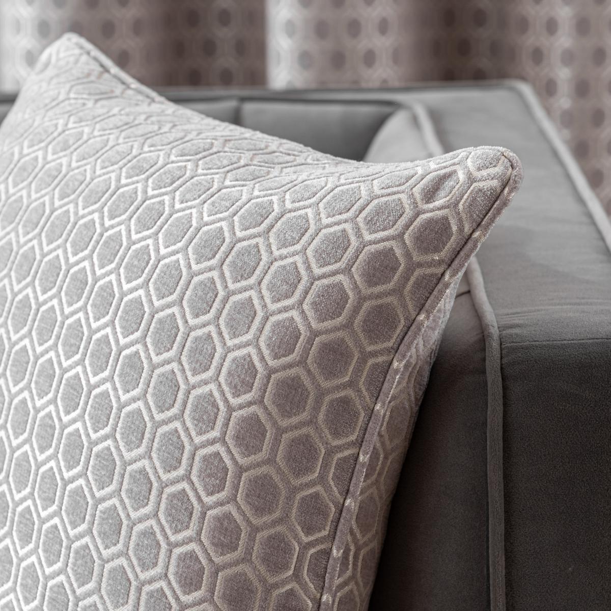 I love this cushion for its versatile yet tactile appeal, making it a stylish addition to both contemporary and classic interiors. The chenille fabric adds a soft, luxurious texture that invites comfort, while the subtle hexagon pattern lends a modern touch without overwhelming the space. It works particularly well on neutral-toned sofas or armchairs, where it can be combined with other textured or patterned cushions for a layered look. Practical styling tips include pairing it with darker or contrasting cushions to create visual interest, or using it on a bed for a chic, inviting feel in a bedroom. Its understated colour and pattern make it a reliable choice for updating existing schemes or adding a subtle touch of sophistication.