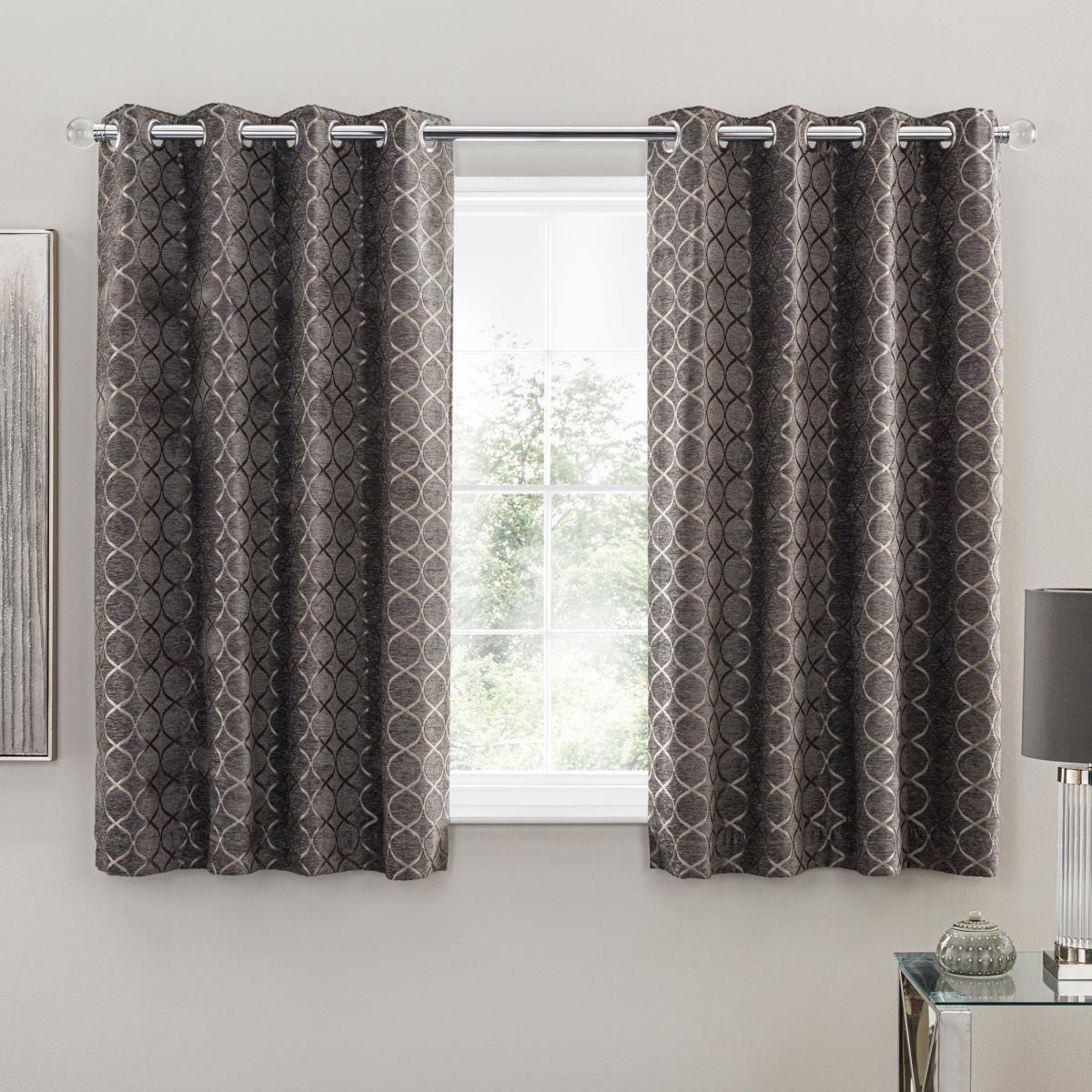 Chenille Ogee Charcoal Eyelet Curtains Charcoal