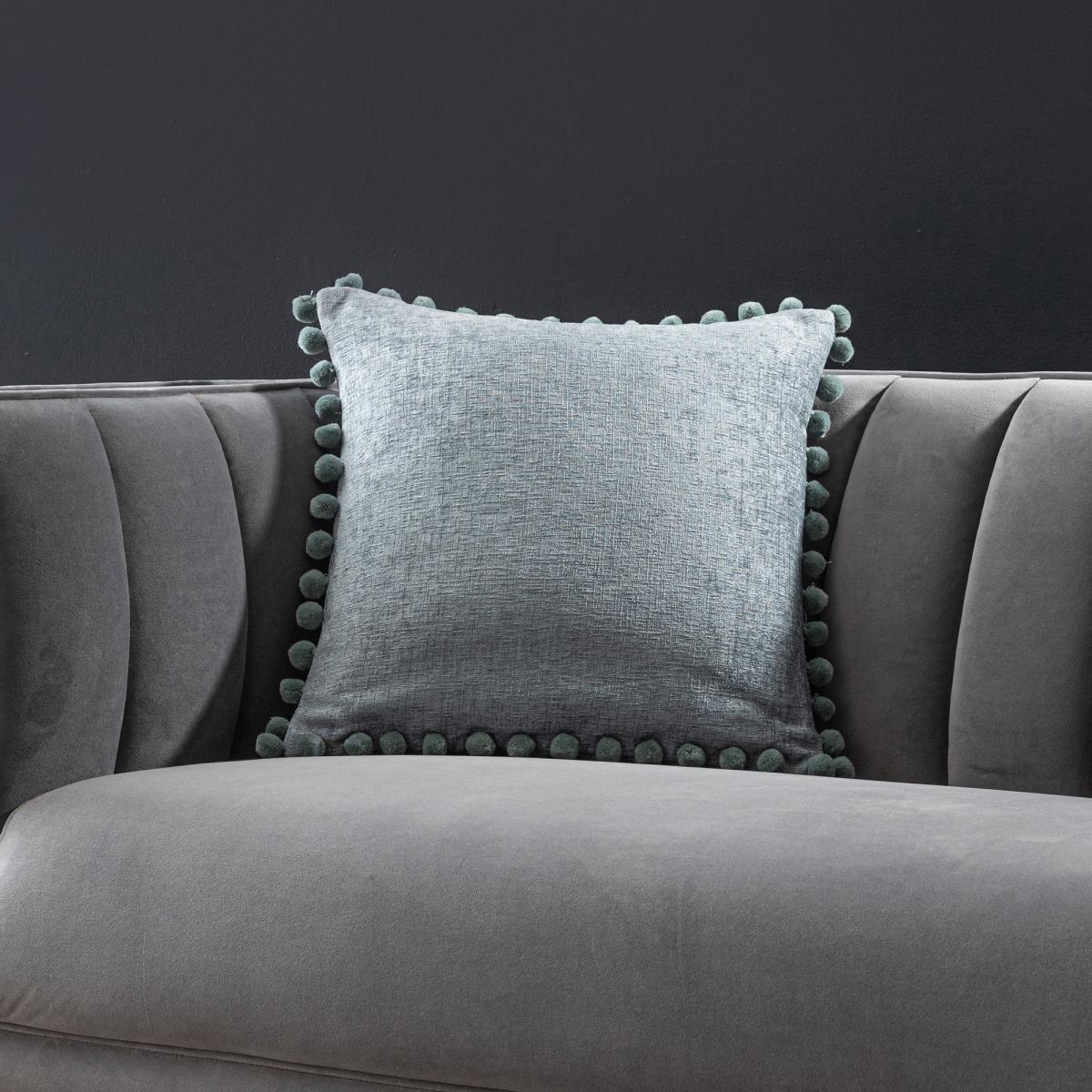 This velvety cushion in a timeless colourway features a fun pompom detailing on the edges. Crafted from luxurious chenille fabric for a sumptuously soft surface, this cushion has a removable cover for added convenience.