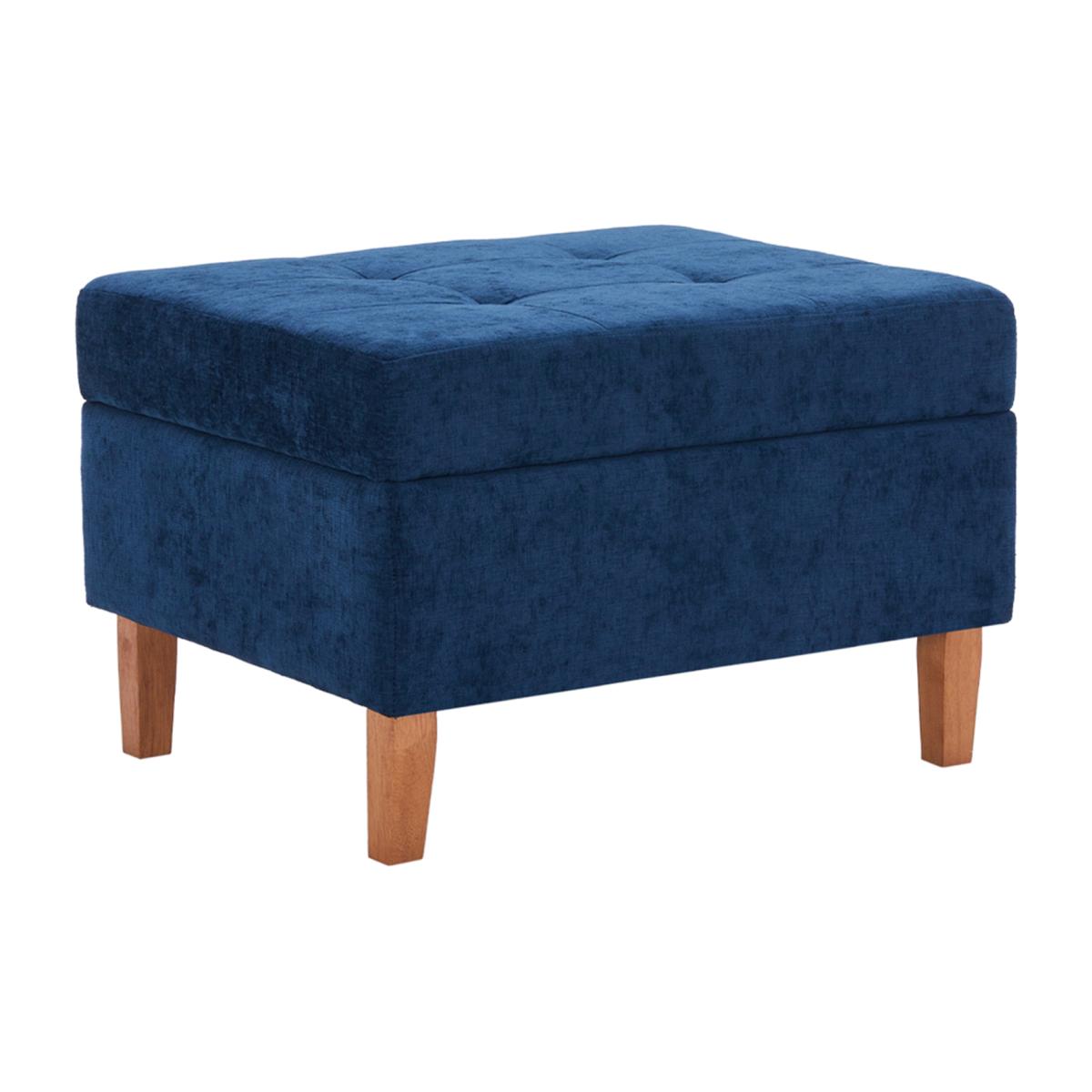 Chenille Storage Bench with Rubberwood Legs - Blue