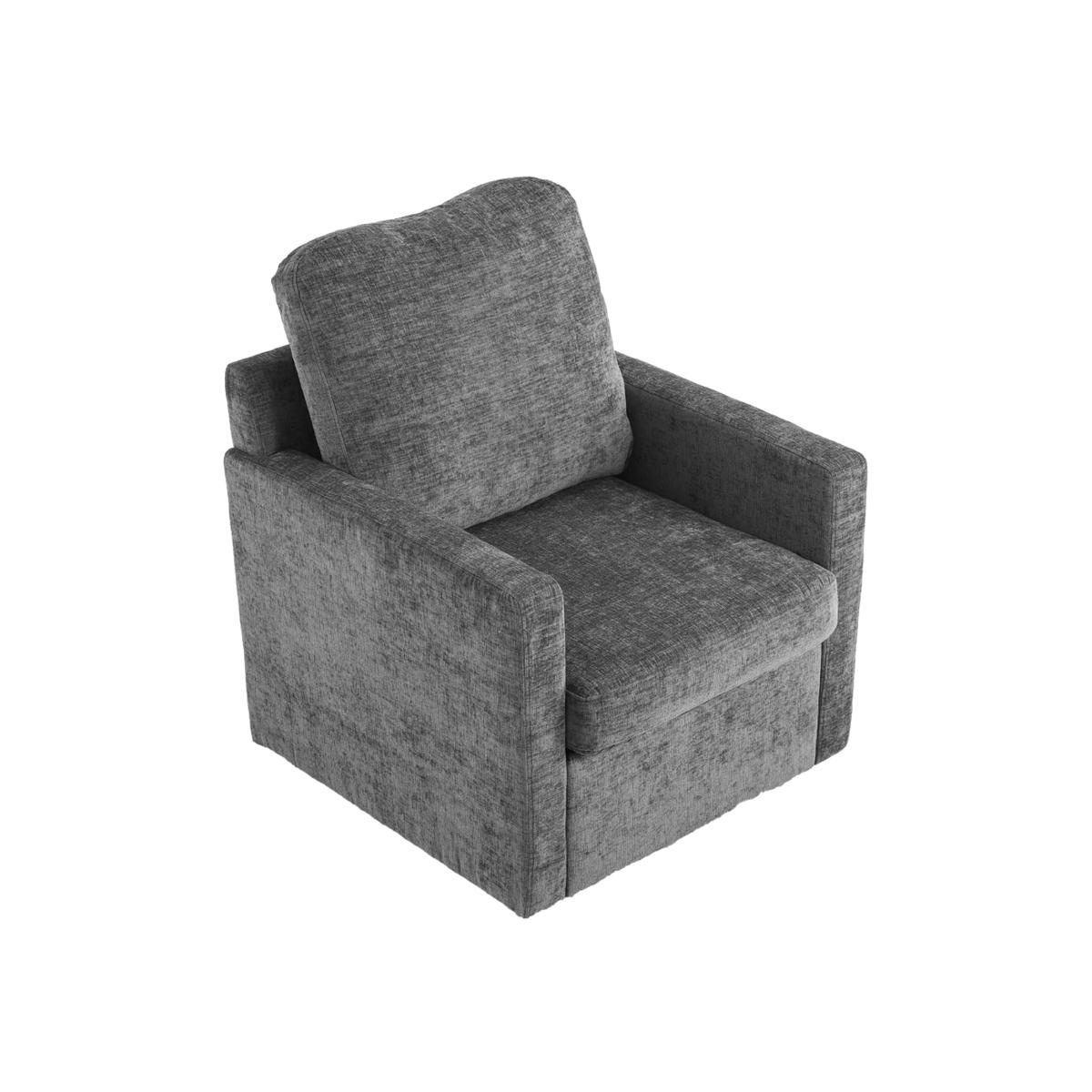 Chenille Swivel Chair with Supportive Curved Backrest - Dark Grey