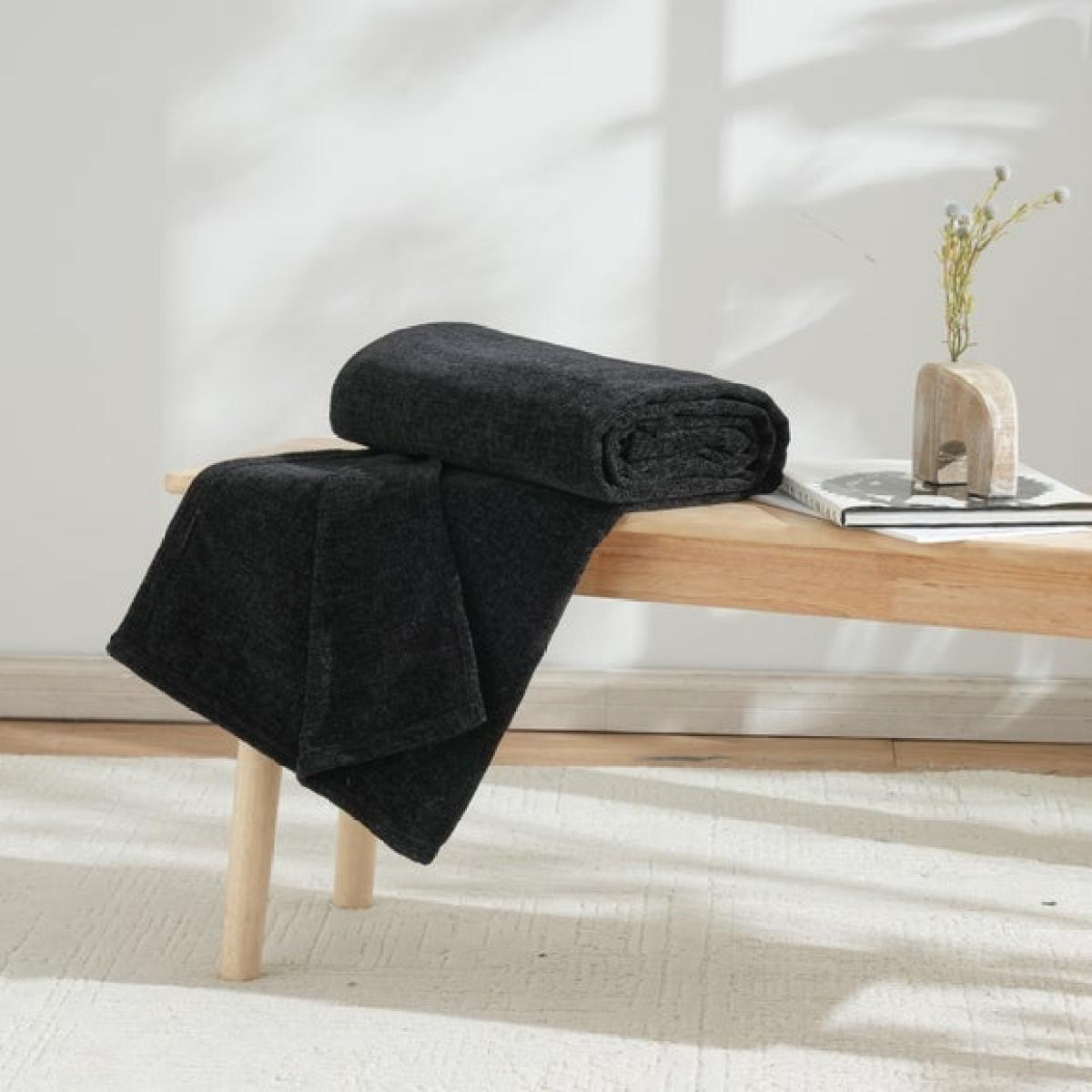 I love the chenille throw because of its plush texture and versatile appearance, making it a great layering piece for both cosy living rooms and neutral bedroom schemes. It works particularly well in contemporary and relaxed interiors, adding a touch of understated luxury. For styling, drape it over the end of a sofa or bed to create an inviting, lived-in feel, and consider pairing it with textured cushions or a natural fibre rug. Its dark colour also makes it easy to incorporate into monochrome or darker palettes, providing warmth and tactility without overwhelming the space.