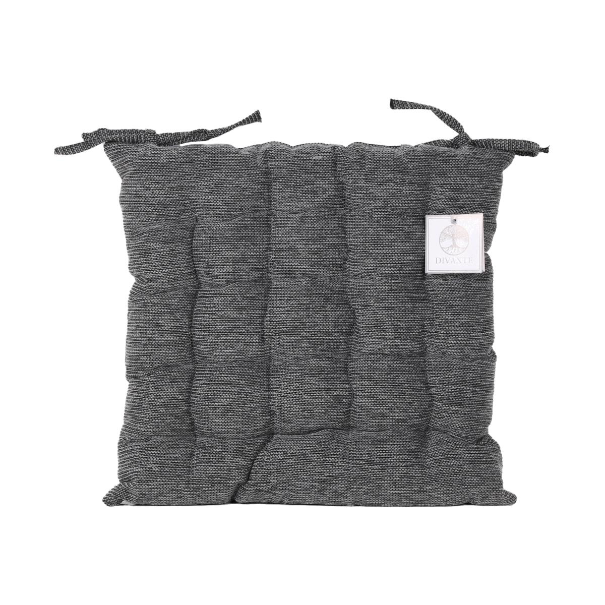 Add instant comfort and style to your dining chairs with this Chenille Weave Grey Seatpad. This pad is filled with plump polyester for cushioning support and includes string fastenings for a secure fit on your chair.
