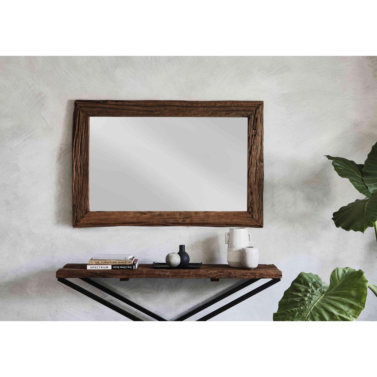 If you love modern industrial style but also gravitate toward the sumptuous and opulent, then Chennai is for you. This stylish fusion of old and new, rustic and modern brings together contrasting materials in the form of genuine reclaimed railway sleeper wood from India, chic glass tops and polished stainless steel bases. Exclusive to Furniture Village, the Chennai range is centred around a stunning and imposing dining table, and includes a carefully curated selection of storage pieces and occasional tables. A large wood framed mirror and curvaceous velvet upholstered dining chair complete this on trend collection. Creatively designed and beautifully crafted, Chennai brings home contemporary glamour. Glamorous industrial style – and only at Furniture Village. Large mirror with a rustic reclaimed wood frame. The perfect piece for a feature wall. If you love industrial style, the Chennai wall mirror makes it easy to bring home this very cool design trend. This beautifully crafted mirror features a gorgeous rustic wooden frame made from reclaimed railway sleeper wood sourced from India. Naturally weathered, it has a striking authentic quality. And because it’s made from reclaimed wood, each Chennai wall mirror is a one-of-a-kind piece. This is also a very impressive home accessory – at 120 cm across its width, it’s both eye-caching and very functional, perfect for over a fireplace, in a hallway or on a feature wall. Usefully, it may be hung both horizontally and vertically. Made in India, the Chennai wall mirror is exclusively available at Furniture Village and is part of the Chennai collection of dining tables, dining sets and occasional tables. The collection offers a stylish fusion of old and new materials, showcasing a sleek and glamorous approach to contemporary industrial style. Please note. Natural wood has unique grain, knots and markings. Every piece is different. Dimensions. Height: 120cm (48in). Width: 80cm (32in). Depth: 5cm (2in).