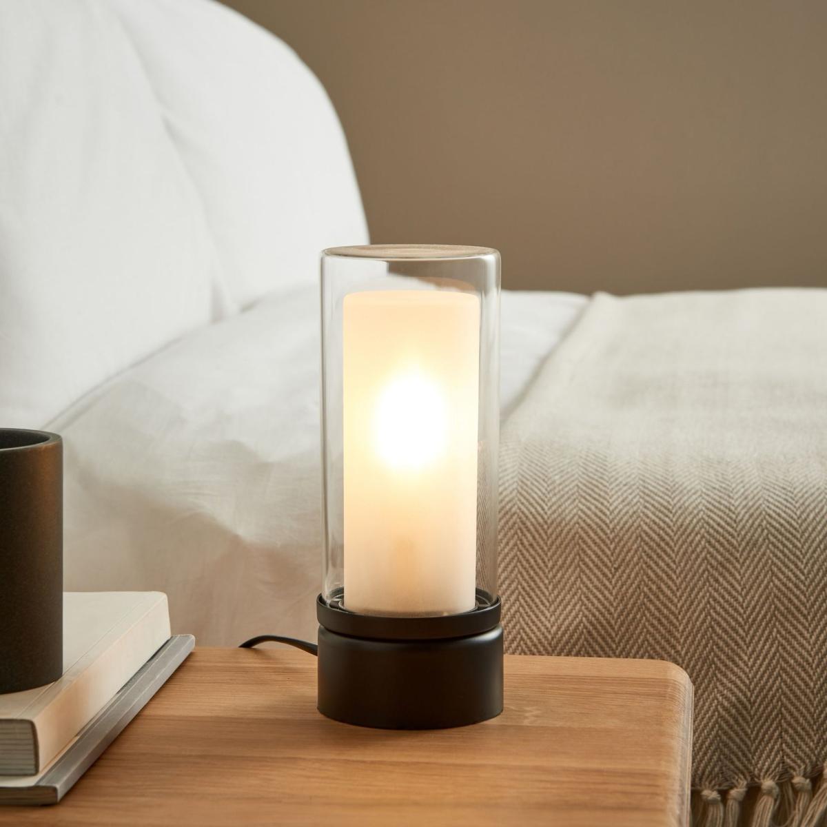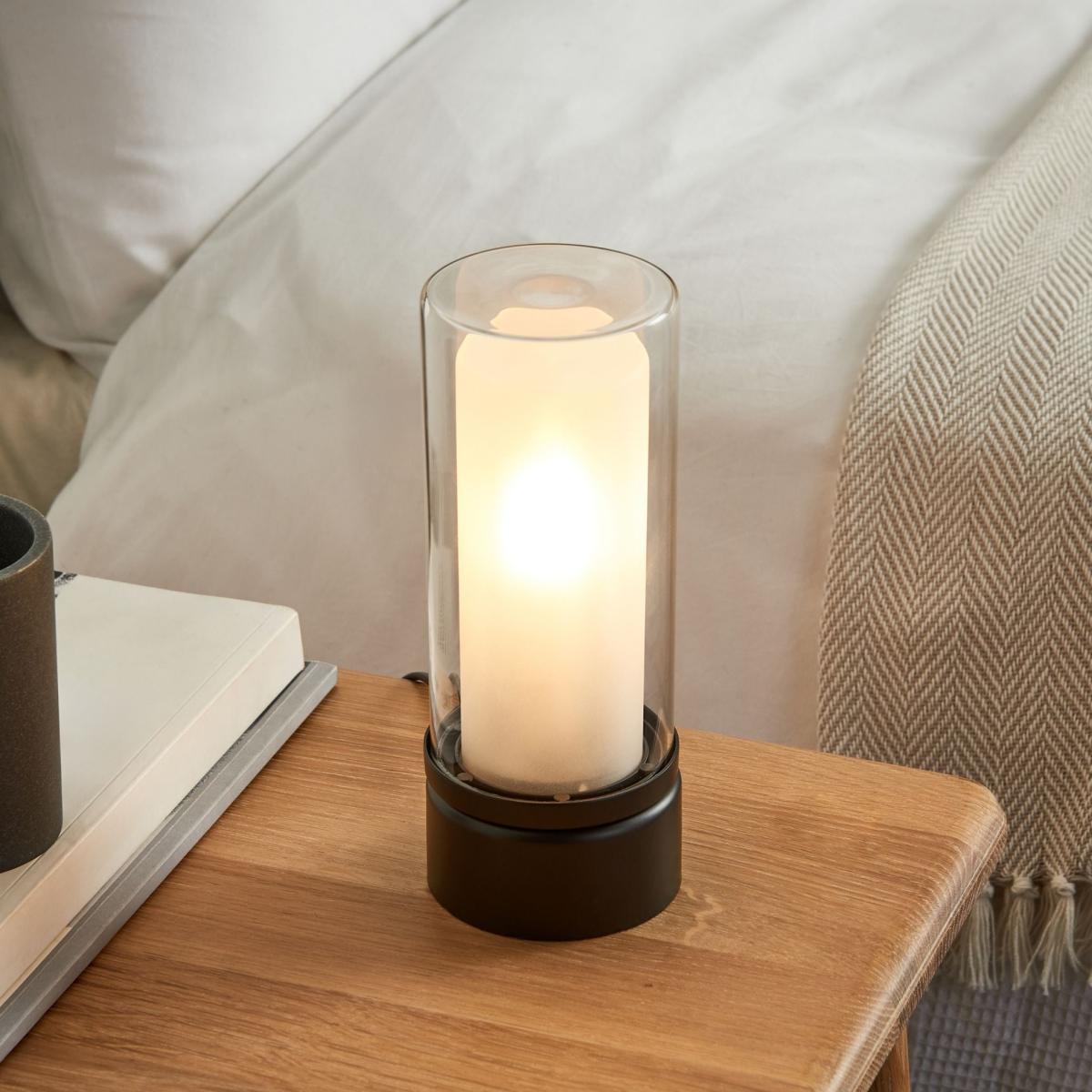 Chepstow 1-light table lamp, featuring a matte black finish, a cylindrical glass outer shade, a frosted glass inner shade and 3-stage dimmable touch operation. The Chepstow table lamp combines sleek, modern design with practical functionality. Featuring a matte black finish, this lamp exudes contemporary elegance, while the cylindrical glass outer shade adds a touch of transparency and sophistication. The frosted glass inner shade softly diffuses the light, creating a warm and inviting ambiance perfect for any room. Equipped with a 3-stage dimmable touch function, the Chepstow table lamp allows you to easily adjust the brightness to suit your needs, from soft mood lighting to bright task illumination. Ideal for living rooms, bedrooms or workspaces, this versatile table lamp brings both style and convenience to your home, seamlessly blending modern aesthetics with user-friendly operation. Chepstow 1-light table lamp, featuring a matte black finish, a cylindrical glass outer shade, a frosted glass inner shade and 3-stage dimmable touch operation. The Chepstow table lamp combines sleek, modern design with practical functionality. Featuring a matte black finish, this lamp exudes contemporary elegance, while the cylindrical glass outer shade adds a touch of transparency and sophistication. The frosted glass inner shade softly diffuses the light, creating a warm and inviting ambiance perfect for any room. Equipped with a 3-stage dimmable touch function, the Chepstow table lamp allows you to easily adjust the brightness to suit your needs, from soft mood lighting to bright task illumination. Ideal for living rooms, bedrooms or workspaces, this versatile table lamp brings both style and convenience to your home, seamlessly blending modern aesthetics with user-friendly operation.