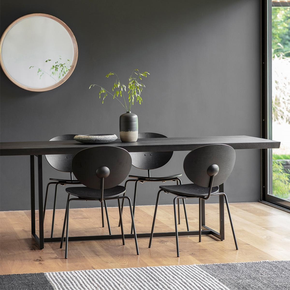Dining rooms are all about the table and chairs. Welcome to the Chepstow Rectangle Dining Table available in two colourways to suit any interior. It has been beautifully assembled using metal as the main structure finished off with a chunky smooth matte surface, made from wood fibres resulting in a natural grained pattern. If your wanting to create a statement piece then the black colourway is a must, pairing this table with coloured chairs, allowing these components to complement each other. But for a more low key and simple feel then the Natural coloured table is the way forward!.