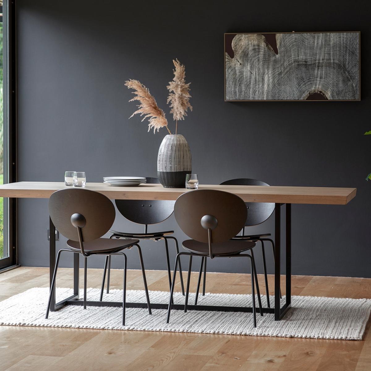 Dining rooms are all about the table and chairs. Welcome to the Chepstow Rectangle Dining Table available in two colourways to suit any interior. It has been beautifully assembled using metal as the main structure finished off with a chunky smooth matte surface, made from wood fibres resulting in a natural grained pattern. If your wanting to create a statement piece then the black colourway is a must, pairing this table with coloured chairs, allowing these components to complement each other. But for a more low key and simple feel then the Natural coloured table is the way forward!.
