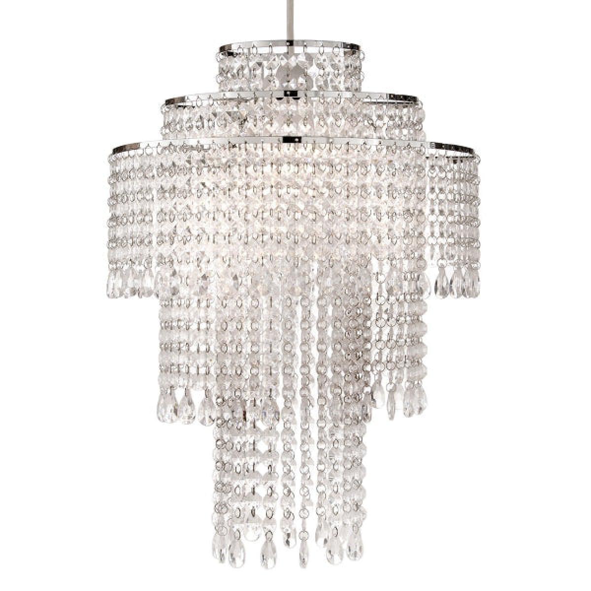 Elegant pendant light shade in crystal effect An elegant 3 tiered easy fit chandelier featuring sparkling crystal effect acrylic drops. When lit, a sparkly diffusion of light is cast. It is ideal for updating existing ceiling lights in lounges, hallways and bedrooms. Elegant pendant light shade in crystal effect An elegant 3 tiered easy fit chandelier featuring sparkling crystal effect acrylic drops. When lit, a sparkly diffusion of light is cast. It is ideal for updating existing ceiling lights in lounges, hallways and bedrooms.