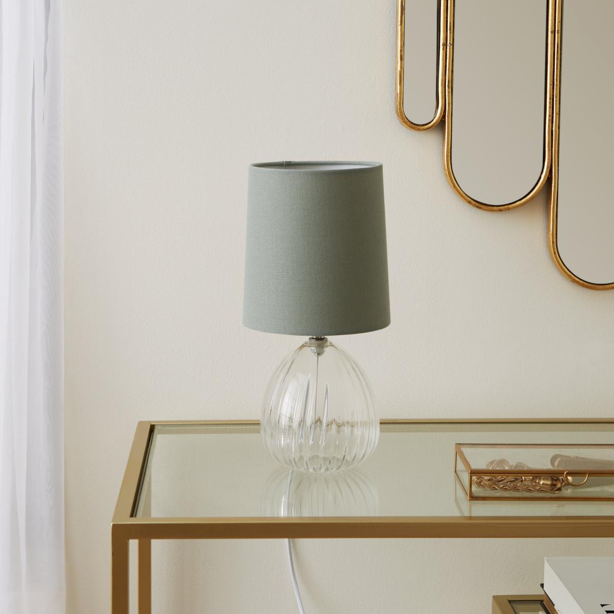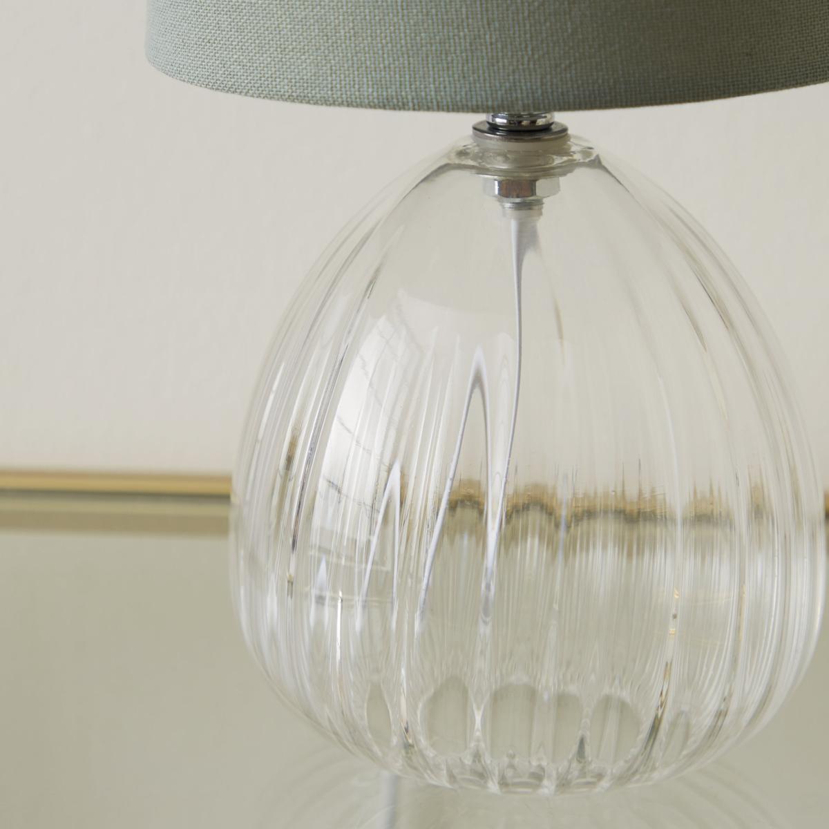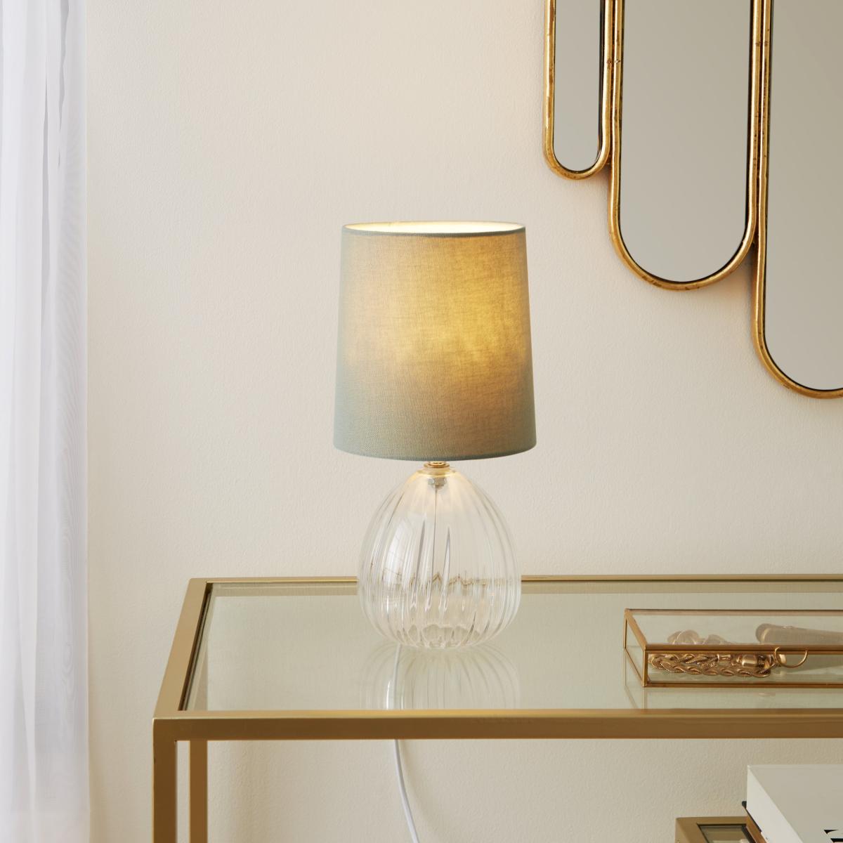 Our stunning Cherie table lamp is made with a luxury style glass base and a contemporary faux linen shade. With an in-line switch, it's easy to switch on and off whenever you need to. This lamp is available in a range of beautiful colours to match any home interior.