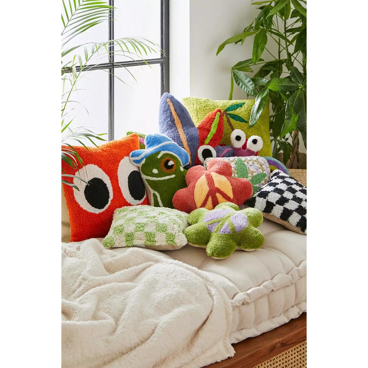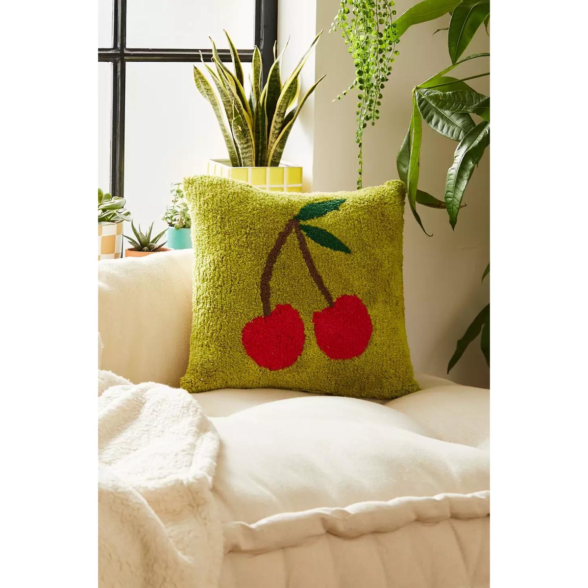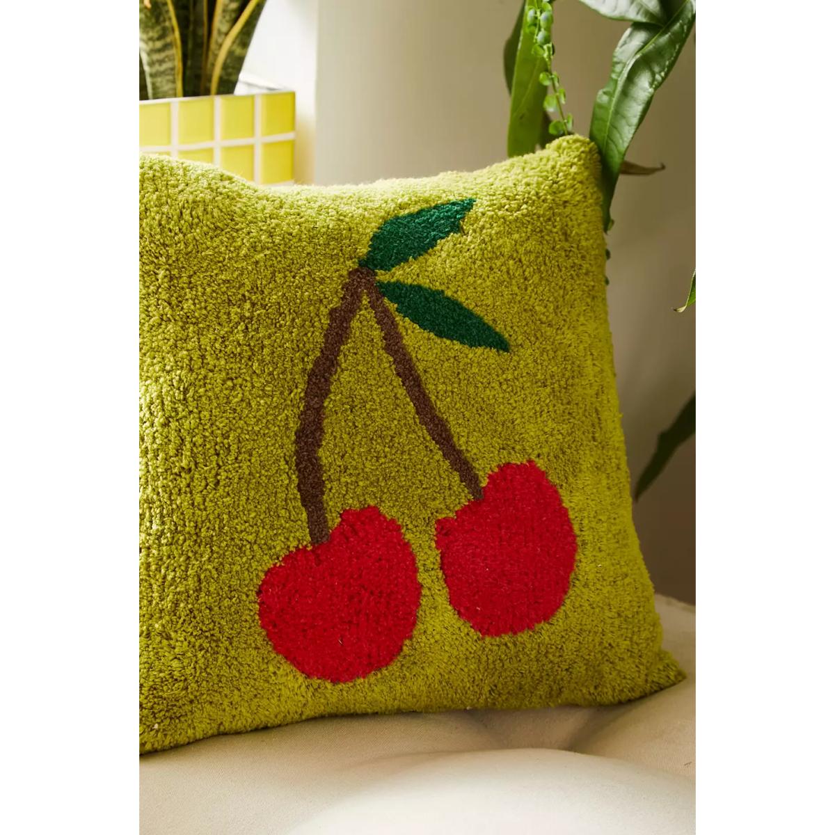 Cherries Tufted Pillow - Green ALL at Urban Outfitters